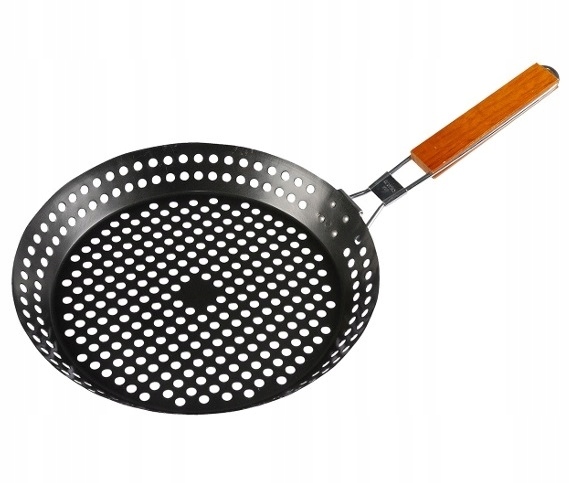 ➡ сталева сковорода для пісного грилю з дерев’яною ручкою покрита спеціальним гідним запобіганням їжі.