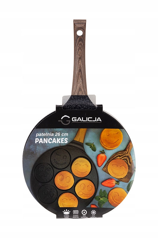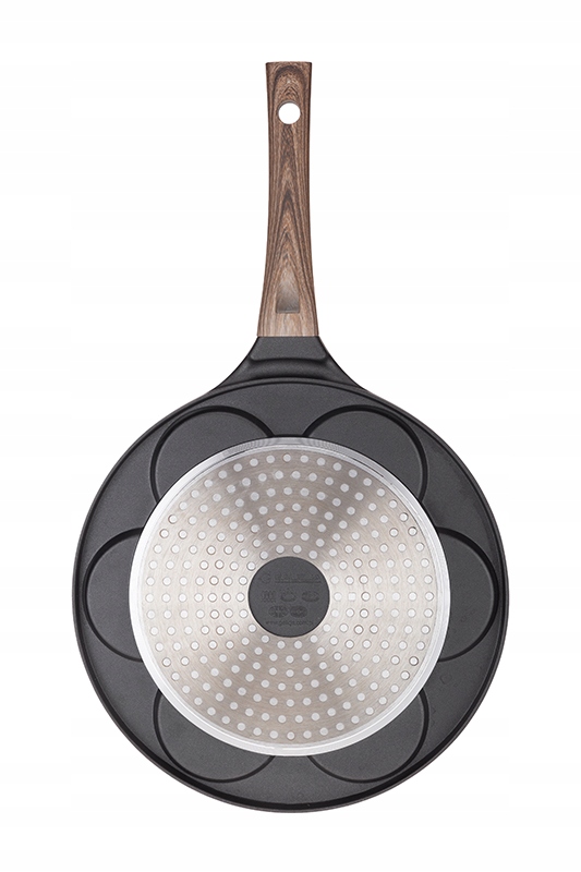 Сковороду PANCAKES доповнює ручка з пластику, приємна на дотик, прикрашена принтом, що імітує дерево. Ручка не нагрівається, безпечна при використанні. Додатковою перевагою каструлі є її практичність - вона підходить для використання на будь-якій плиті, включаючи індукційну, і її можна мити в посудомийній машині. Сковорода має цілих сім порожнин, призначених для смаження млинців, і кожна з них прикрашена різною веселою мордочкою. Під час смаження на тісті чітко проступають цікаві візерунки, завдяки яким на кухні буде панувати радісна атмосфера!