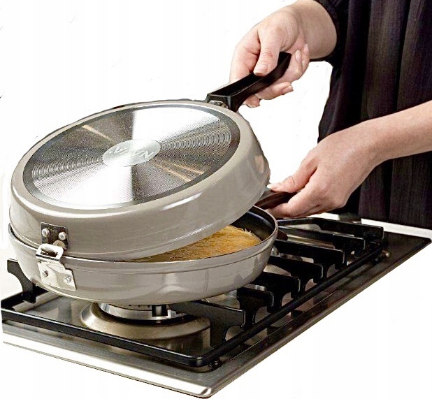 Набір складається з двох з’єднаних між собою сковород, які також можна використовувати як дві незалежні сковороди.