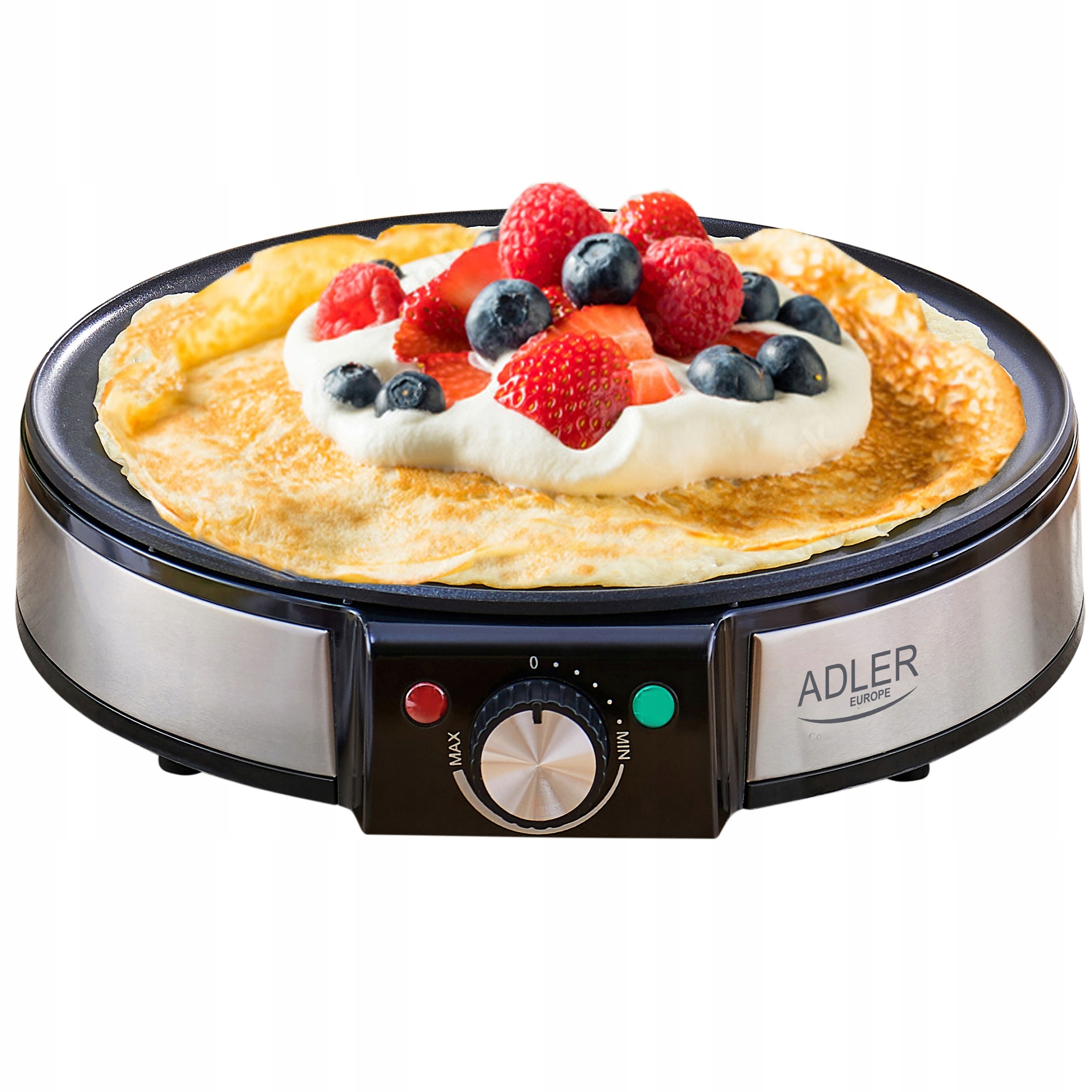 Млинниця ADLER AD 3058 — це пристрій, який можна використовувати в більшості домівок. Ви зможете швидко і зручно приготувати закуски на сніданок і полуденок, а також основну страву на вечерю. Діаметр нагрівальної плити приладу 30 см. Антипригарне покриття нагрівальної плити, форма та високий край, що запобігає розливанню тіста, полегшують смажити млинці, а також коржики, млинці та деруни. Пристрій дозволяє плавно регулювати температуру, а два світлові індикатори вказують на готовність обладнання до роботи. У набір також входить приладдя для розмазування тіста та перевертання млинців.