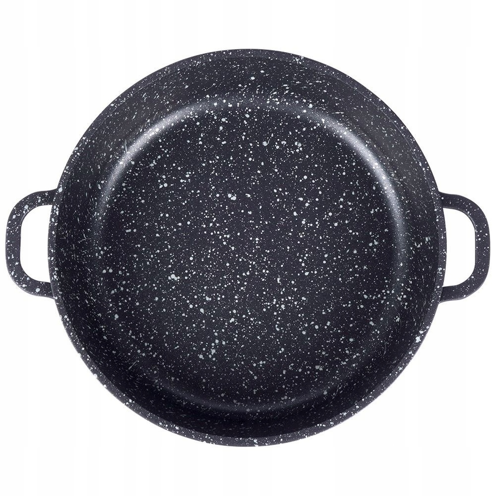 ✅ НАДІЙНА - Сковорода діаметром 28 см, ємністю 4,3 л з кришкою. Сковорода виготовлена з алюмінію чорного кольору і має всередині антипригарне гранітне покриття. Оснащений кришкою зі скла та нержавіючої сталі. Зовнішні розміри каструлі: 36 х 29 х 8 см, висота з кришкою 14 см.