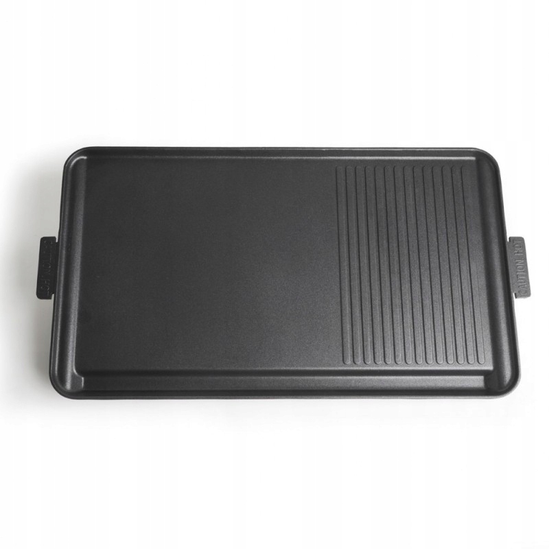 Сковорода розміром 53 х 28 см виготовлена з товстого алюмінію, що забезпечує рівномірний розподіл тепла та швидке та ефективне смаження.
