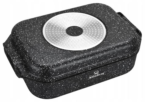 Алюмінієва жаровня прямокутної форми з мармуровим покриттям, яке запобігає прилипанню їжі.