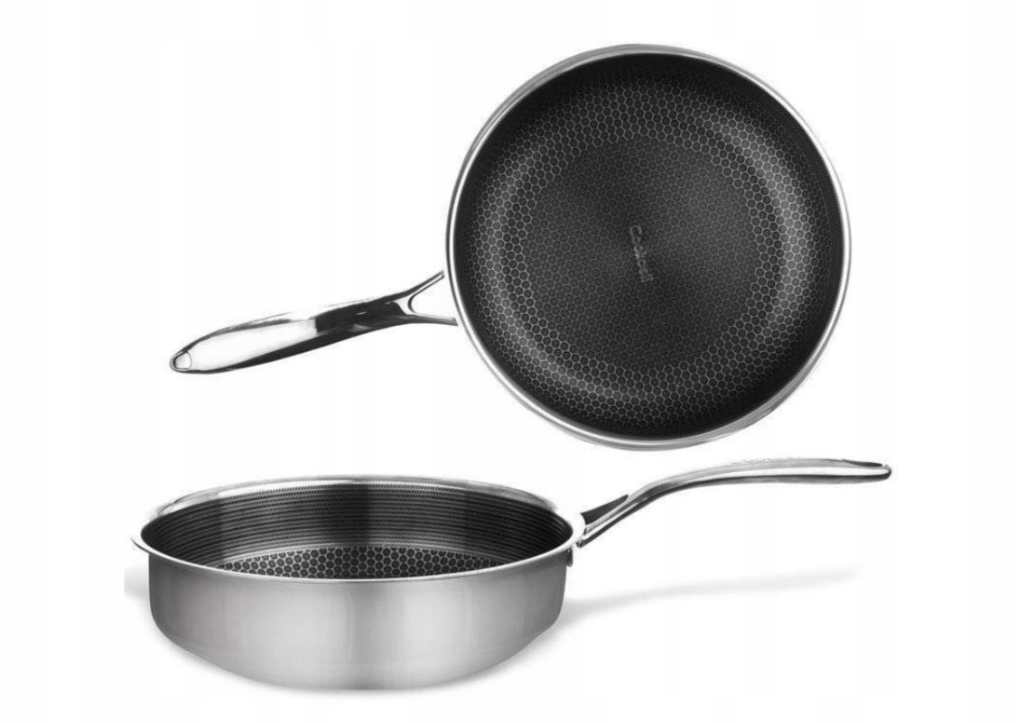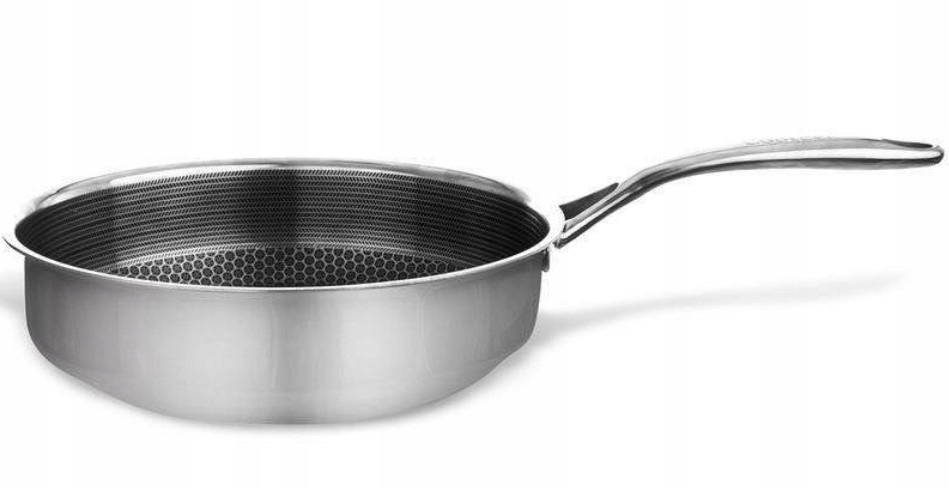 - НАДІЙНА - Сковорода преміум класу виготовлена з високоякісної нержавіючої сталі з антипригарним покриттям, 28 см в діаметрі. Зовнішні розміри: довжина 50 см, висота каструлі 7,5 см, висота з ручкою 10 см. Сковорода міцна і довговічна. Сковорода з унікальної серії COOKCELL HYBRID.