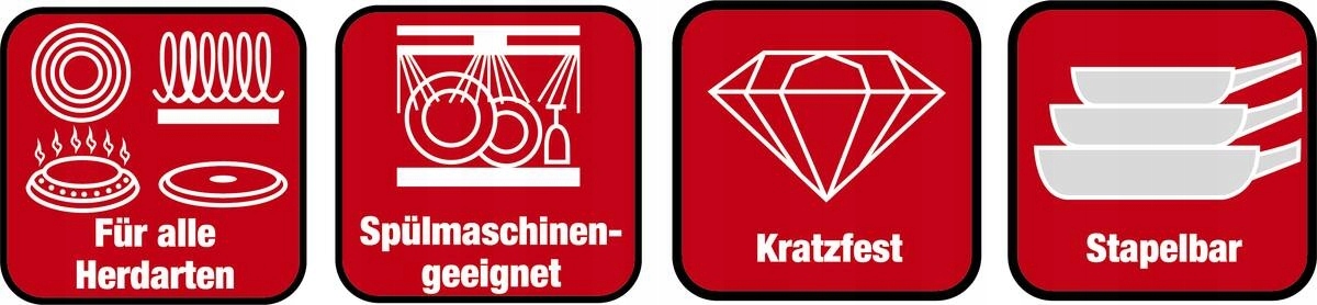 Особливо міцний, рівномірний теплопровідний/розподіл тепла, хороший накопичувач тепла, стійкий до подряпин, можна мити в посудомийній машині