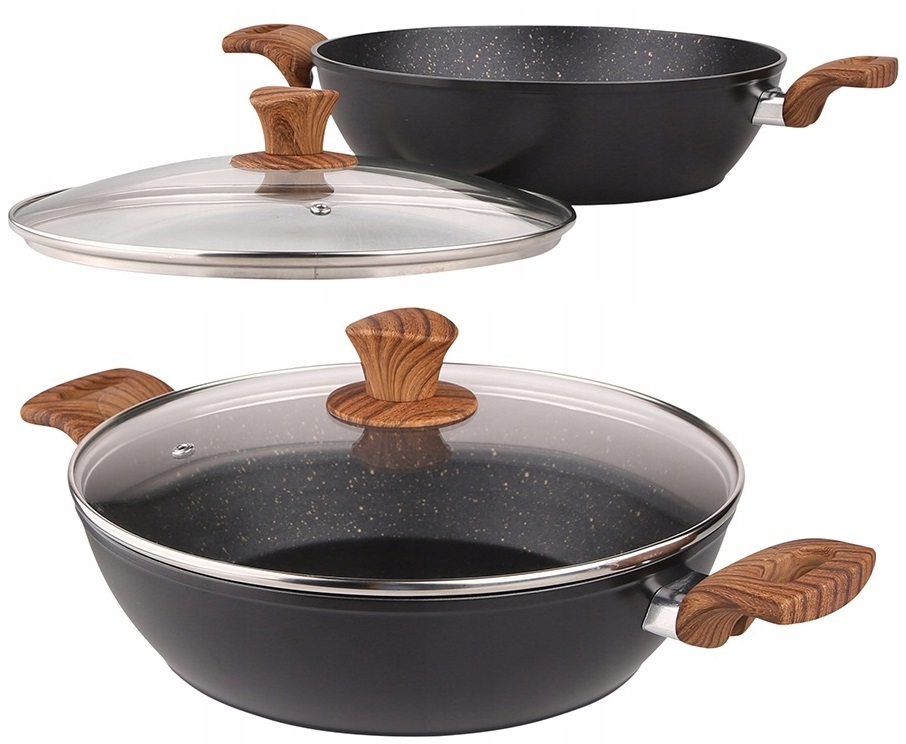 - Елегантні ручки з дерев'яним дизайном забезпечують зручне та безпечне захоплення.