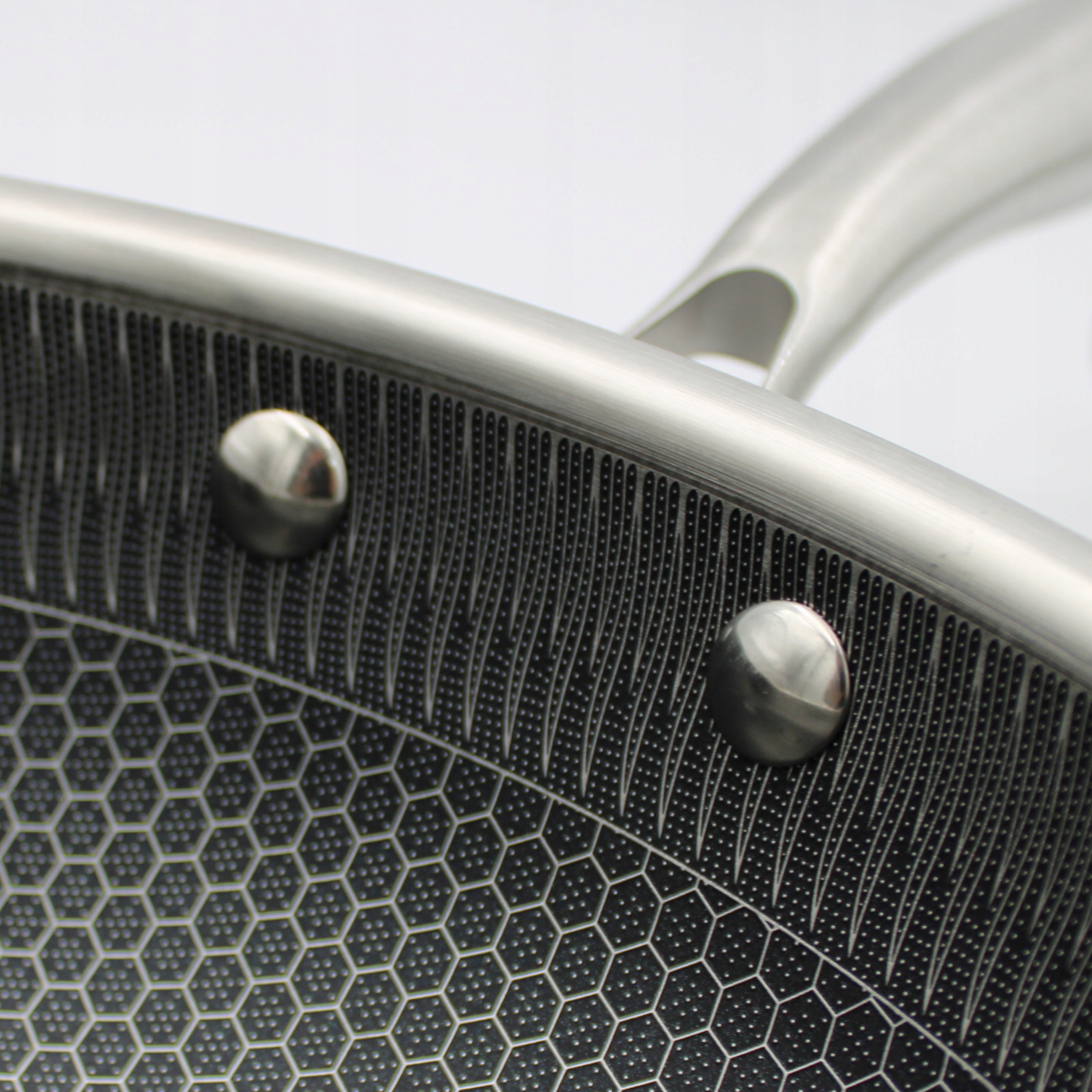✅Стільникове (шестикутне) покриття сковороди — це сучасне рішення, яке забезпечуєвиключну довговічність і чудові антипригарні властивості.