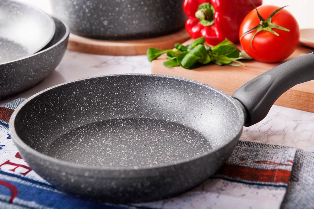 ✅ Високоякісне антипригарне покриття з ефектом каменю має антипригарні властивості, що запобігає пригоранню їжі