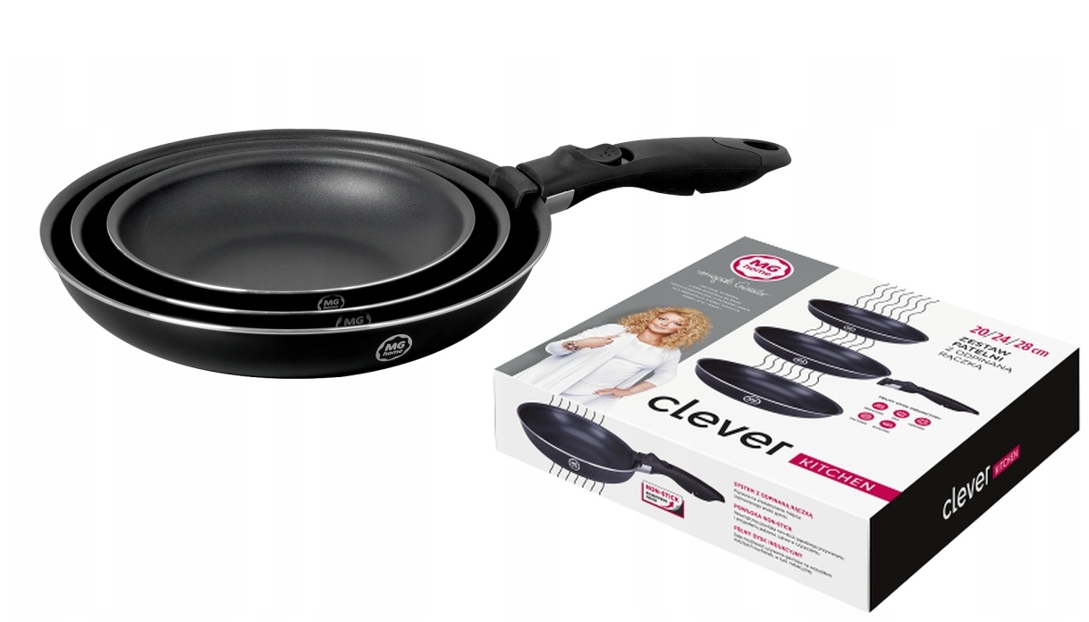НАБІР СМАЖЕНЬ MG HAME FRY ЗІ ЗНІМНОЮ РУЧКОЮ 4 ЕЛЕМЕНТИ. ДІАМЕТР 20/24/28 CLIVER KITCHEN
