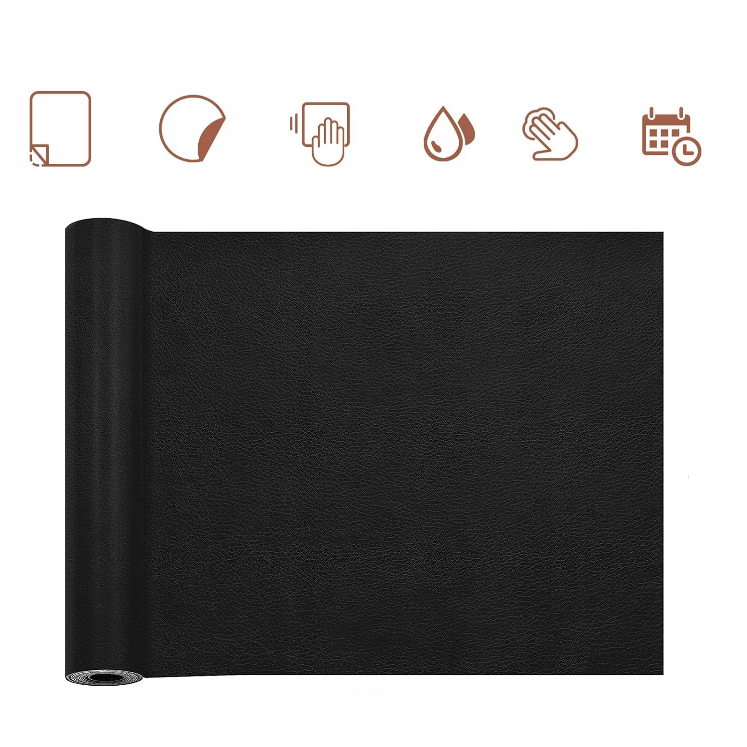 SKÓRA SAMOPRZYLEPNA EKO SKÓRA SKAJ TAPICERSKI KLEJ ŁATY CZARNY 300X20 CM