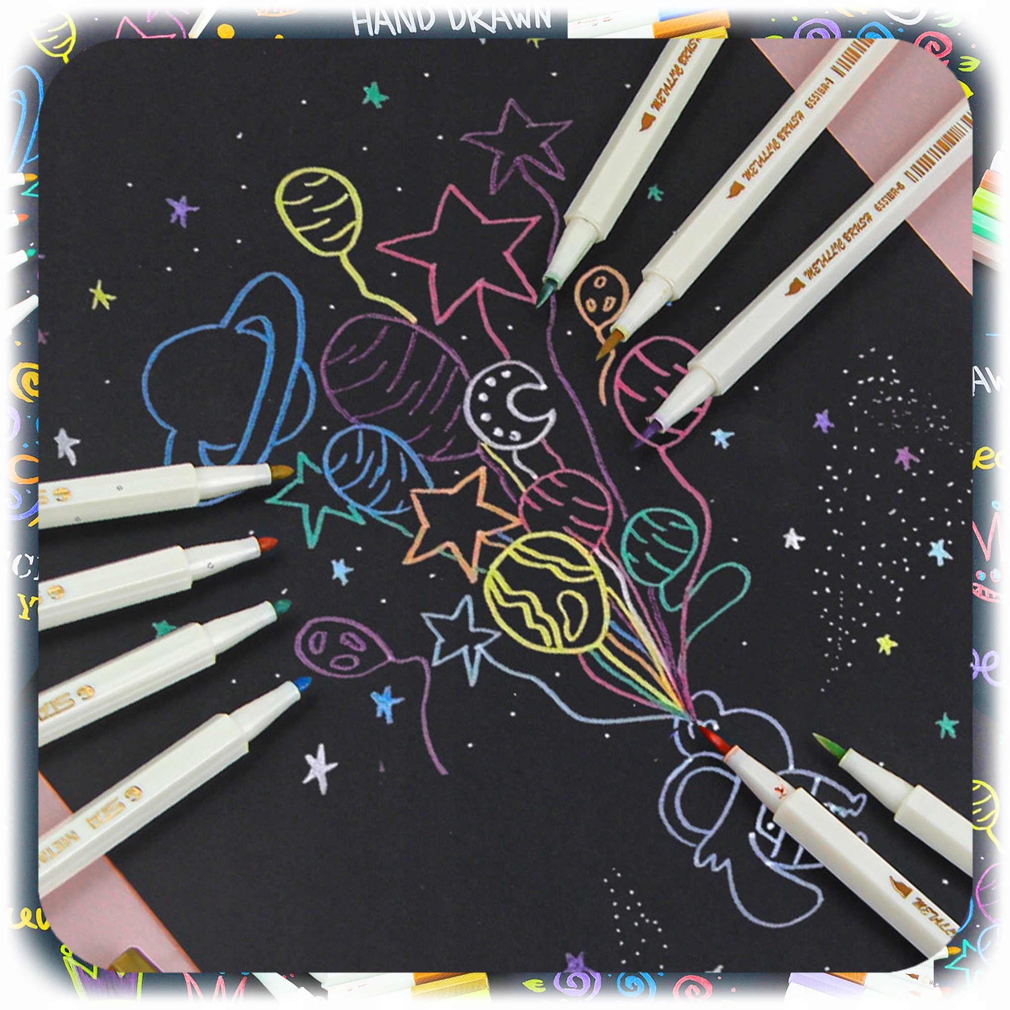 ❣️ Елегантний чорний папір: ідеально підходить для письма та малювання металевими ручками, які додадуть блиску будь-якій сторінці.