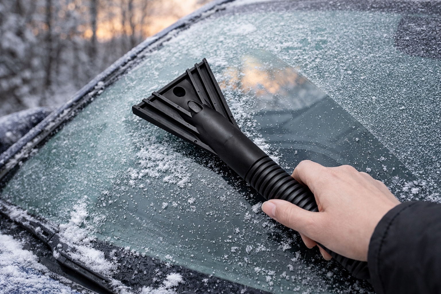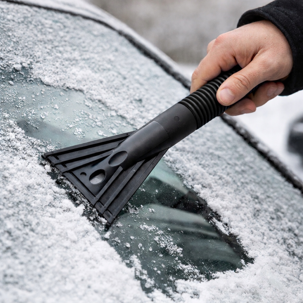 Надійний пластиковий скребок для льоду, ідеальний для щоденного використання взимку. Ефективно видаляє іній, лід і обмерзання, не дряпаючи скло.