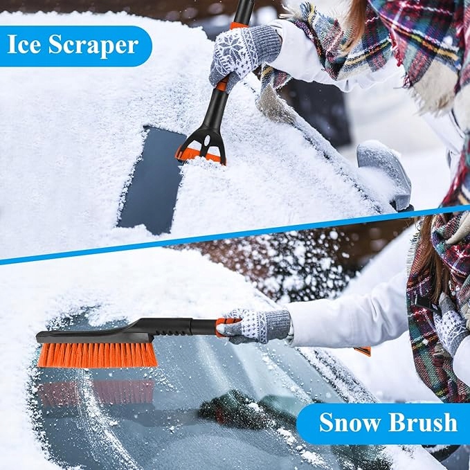 ⭐ Скребок для льоду, щітка для вітрового скла, 2-в-1, складна автомобільна щітка для очищення снігу ⭐