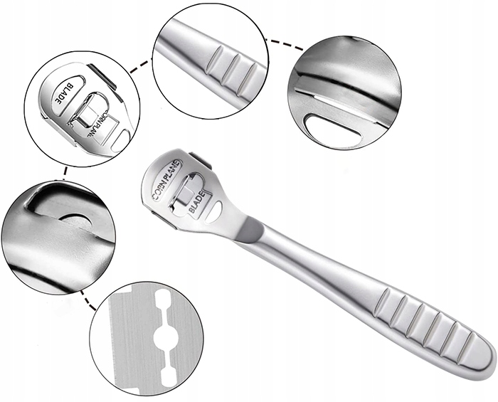 Омега - безпечний і гігієнічний засіб для видалення надлишків шкіри на стопах. Він виготовлений з міцноїнержавіючої сталі. Лезо бритви Omega розроблено таким чином, щоб не зрізати надто товстий шар шкіри на ногах за один раз, щоб не завдавати травм.