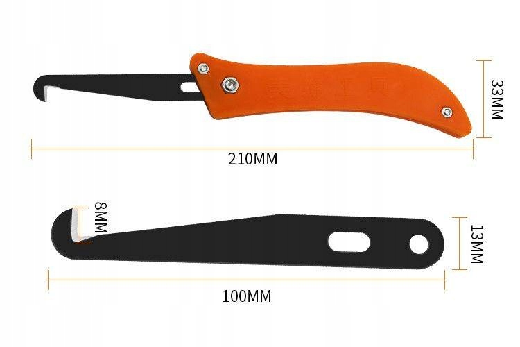 Скребок призначений для видалення розчину в плитці, це корисний інструмент при заміні кількох плиток. Ніж-гачок корисний для очищення бур'янів, трави та моху з щілин між тротуарною плиткою, бордюрами, стінами тощо.