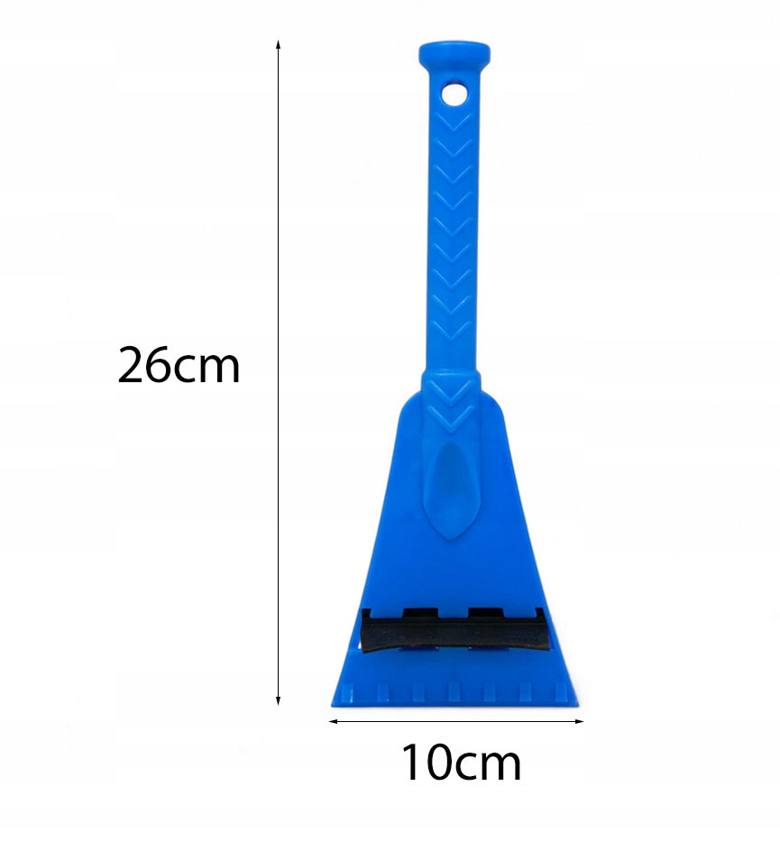 Скребок для віконце важлива річ у нашому автомобілі взимку. Виготовлена з якісного пластику, легко і швидко видалить іній і іній з вікон і дзеркал. Скребок має зручну ручку з губкою, що полегшує його використання. Наконечник оснащений зубцями, які допомагають видаляти сніг. Завдяки практичному розміру скребка ми можемо легко видалити іній зі скла.