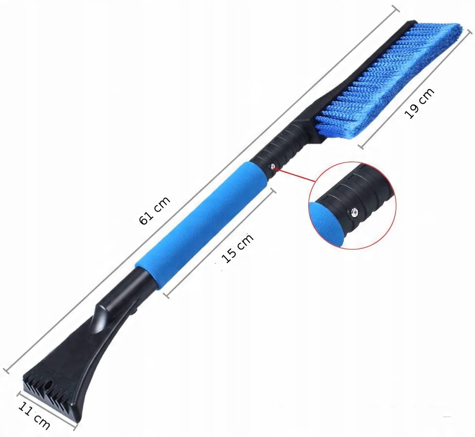 Оснащений широким скребком зі спеціальною зубчастою поверхнею для видалення товстого льоду зі стекол автомобіля. Гладка поверхня без проблем впорається з морозом.