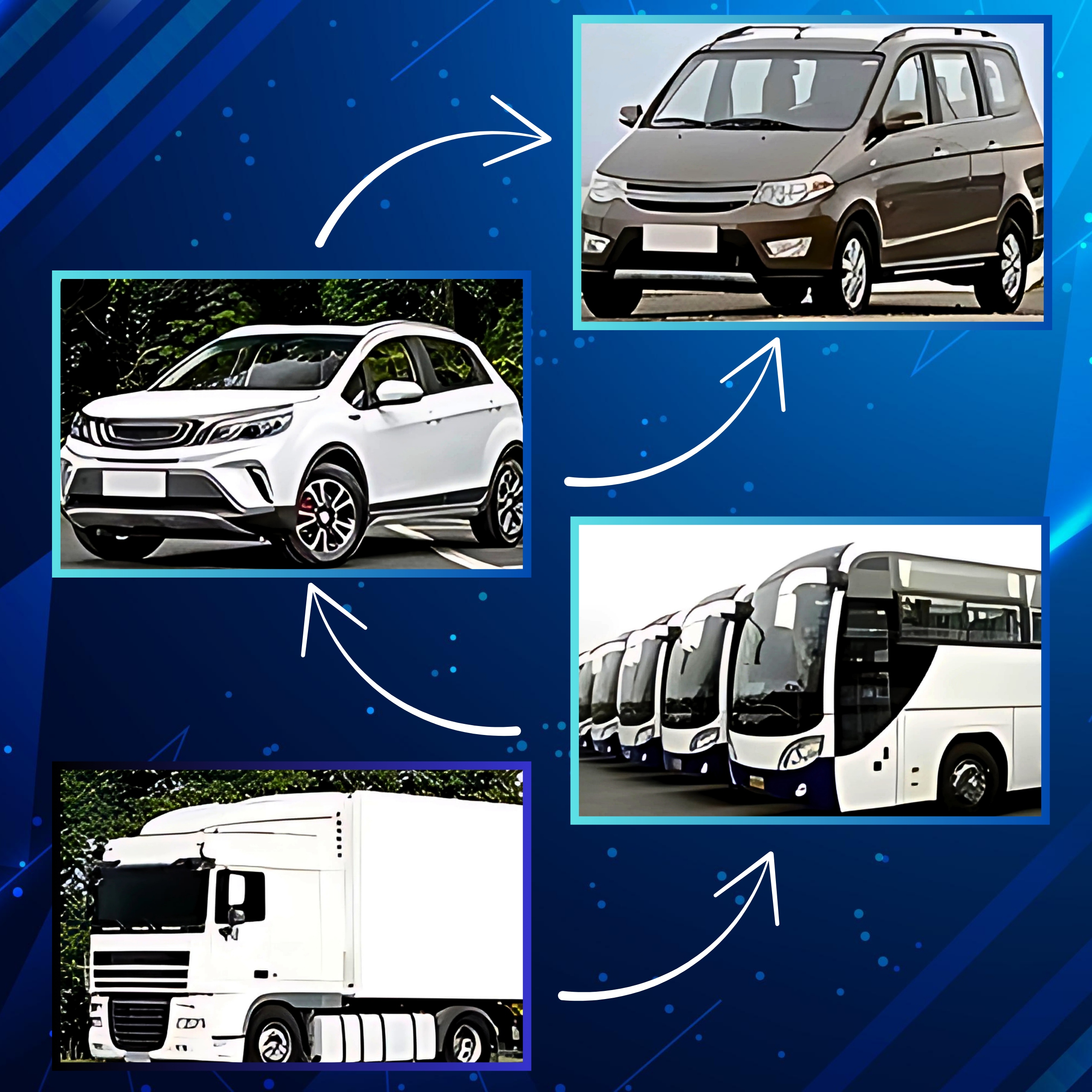 - для всіх автомобілів, вантажівок, автобусів тощо.
