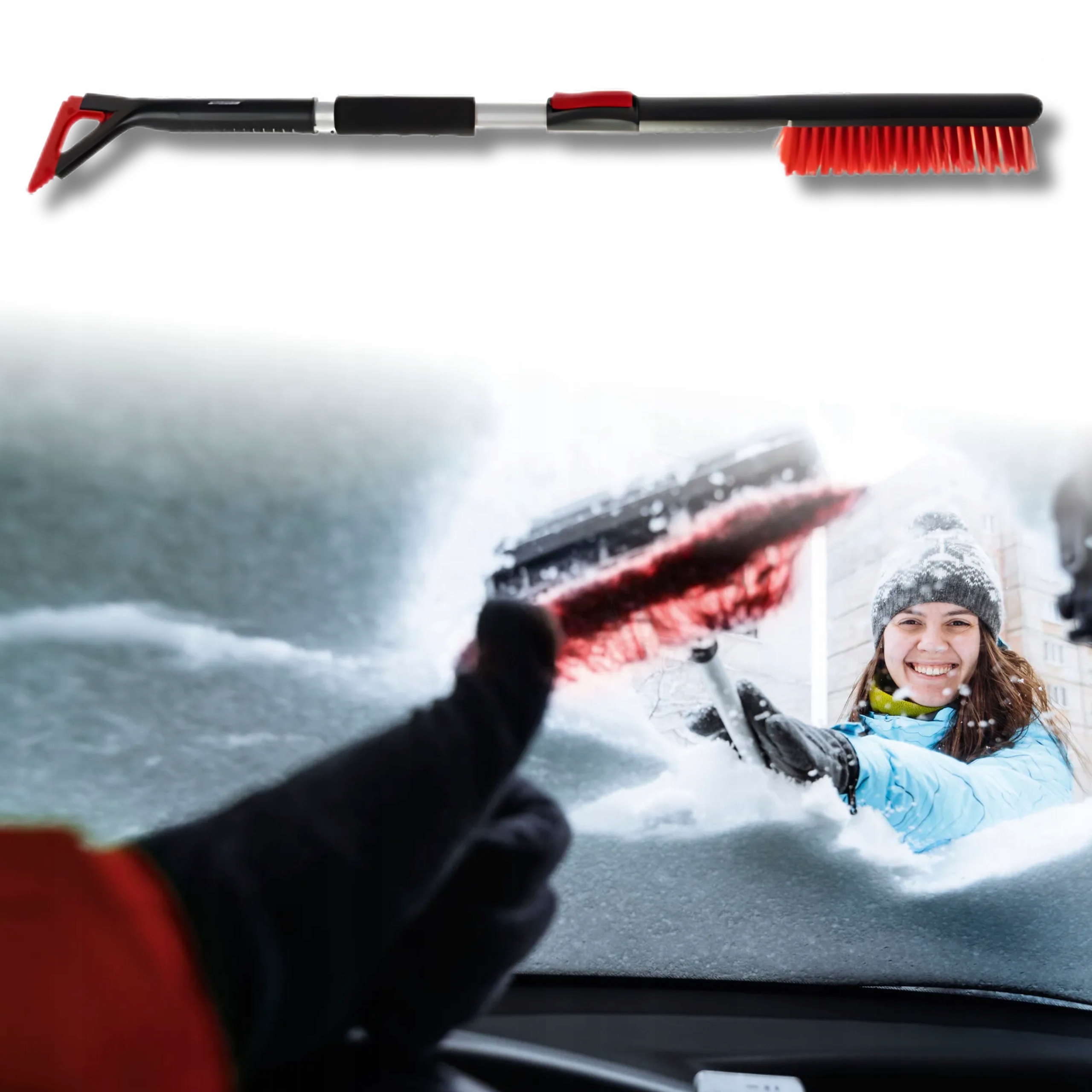 - Делікатна м'яка щетина: Гнучка щетина видаляє сніг, не дряпаючи фарбу.