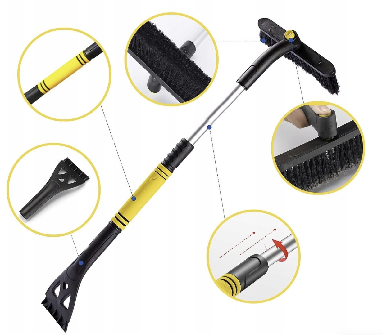 ✅ Обертова головка - можливість встановити кут щітки на 360° підвищує точність роботи та ефективність видалення снігу з різних поверхонь, напр. бічні вікна та маски.
