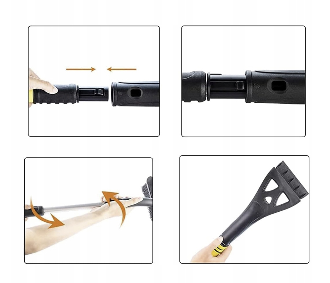 ✔️Багатофункціональний інструмент 2в1 необхідний взимку: телескопічна щітка для прибирання снігу та гнучкий скребок для льоду. Поворотний механізм і регульована довжина (64-80 см) дозволяють швидко і безпечно почистити будь-який автомобіль, навіть з високим дахом.