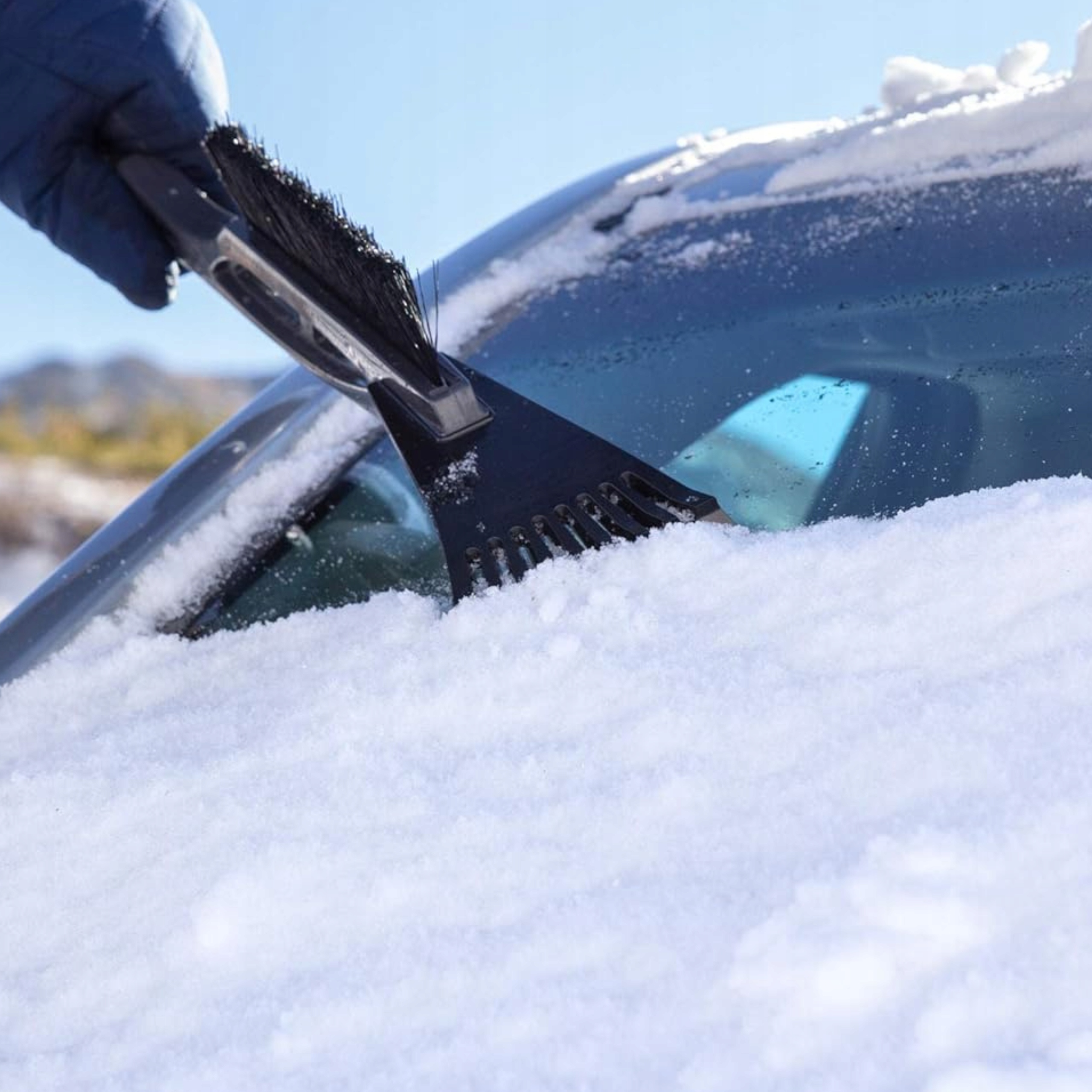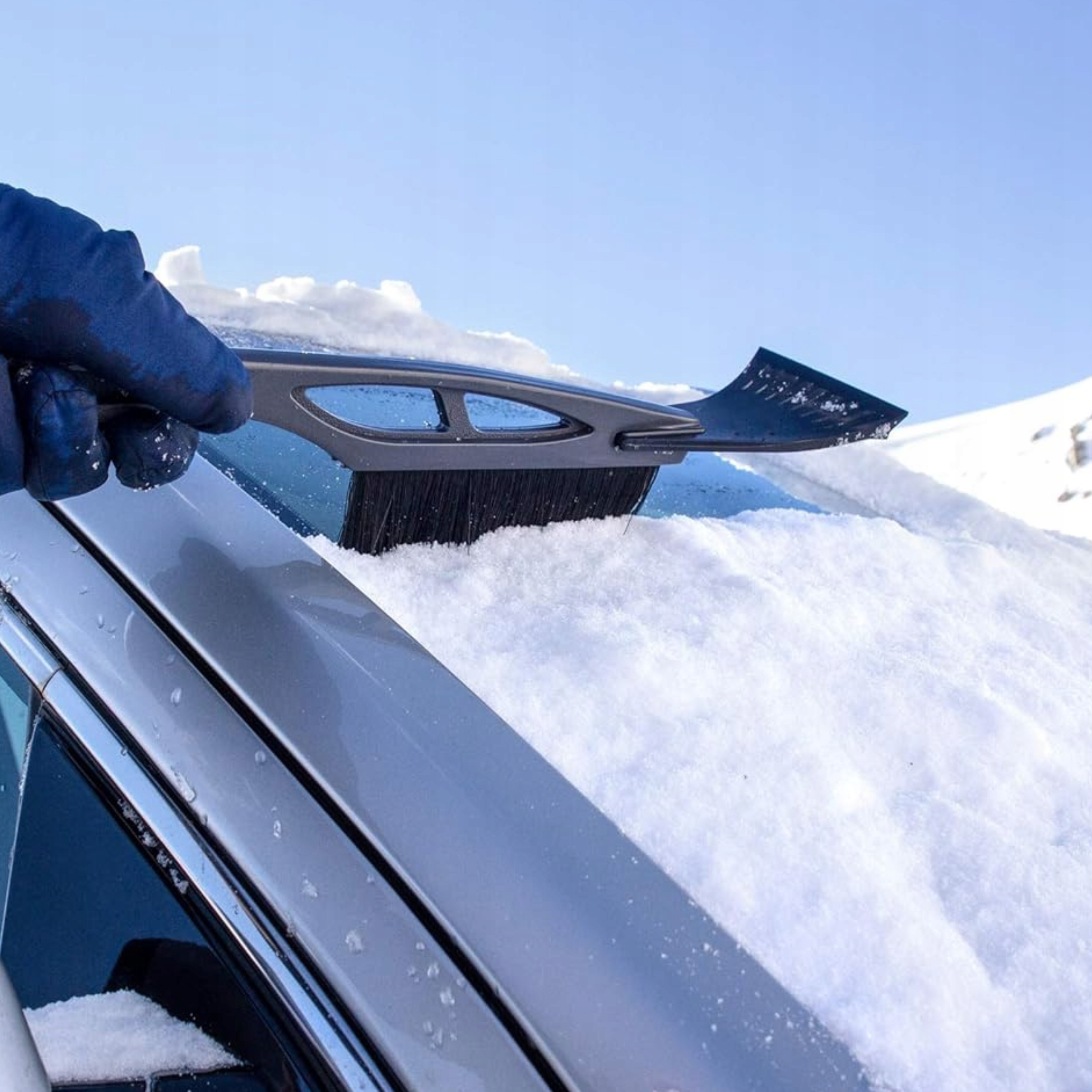 - Щітки з густою щетиною – дозволяють легко зішкребти сніг без ризику подряпати фарбу.