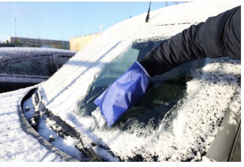 Скребок для вікон із флісовою рукавичкою є незамінним автомобільним аксесуаром взимку.