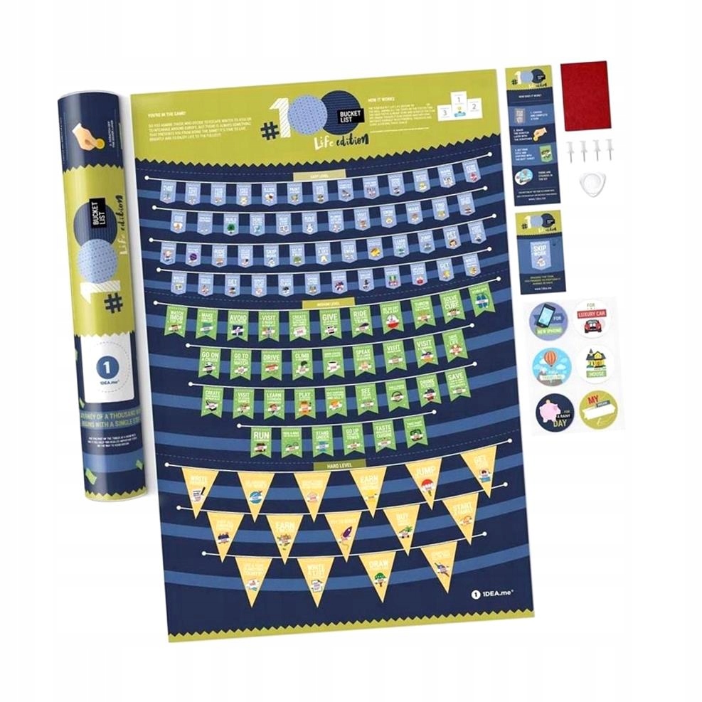 1DEA #BUCKETLIST Life Edition це чудово оформлений інтерактивний плакат із 100 речами, які ви повинні зробити в житті, щоб отримати від нього максимум користі. Виконуйте завдання, здійснюйте свої мрії та видряпуйте більше коробок.