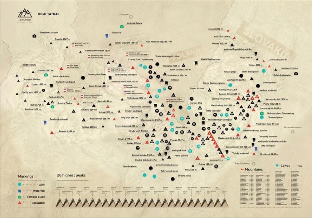 СКРЕТЧ КАРТА - ГІРСЬКІ ВЕРШИНИ ВИСОКИХ ТАТР ВЕЛИКИЙ