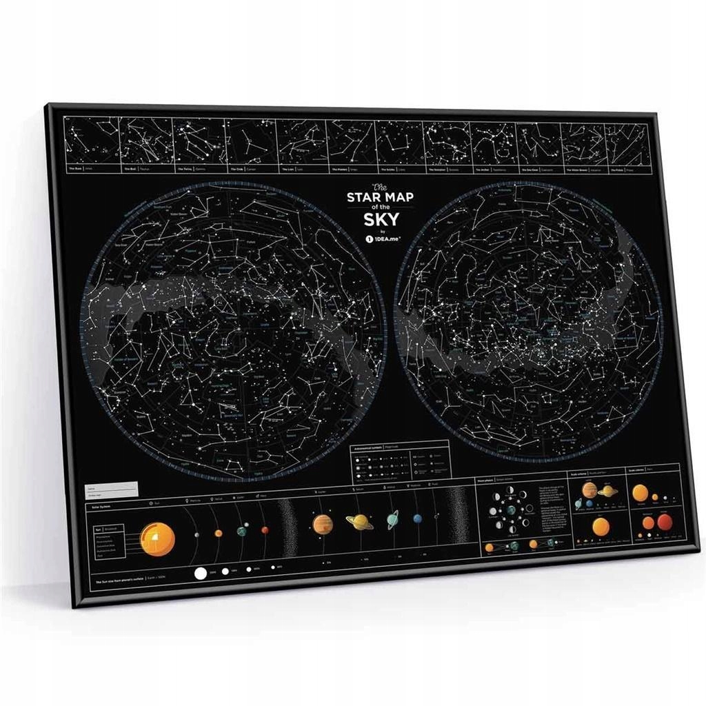 Зоряна карта неба — це спеціально розроблена карта неба, що світиться в темряві, усипаного блискучими зірками. Завдяки йому ви побачите Галактику у всій її красі. Хочете знати всі фази Місяця? Дізнайтеся, яка найменша планета Сонячної системи? Це ідеальна ідея для романтичного подарунка для вашої другої половинки або цікавого подарунка для тих, хто захоплюється астрономією. Крім того, Зоряна карта неба - це неординарна прикраса, яка зробить ваш інтер'єр унікальним і чарівним. Виготовлений з високоякісного ламінованого паперу (250 г/м2) розміром 50 х 80 см.