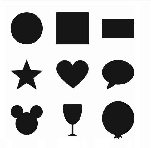 Ми пропонуємо кілька базових дизайнів, наприклад коло, квадрат, прямокутник, зірка, серце, чат, Дісней, чашка, повітряна куля...