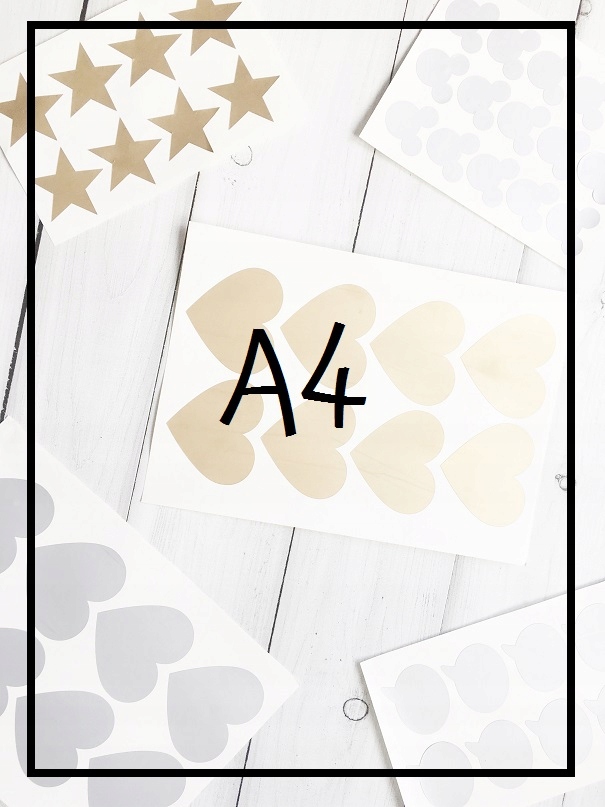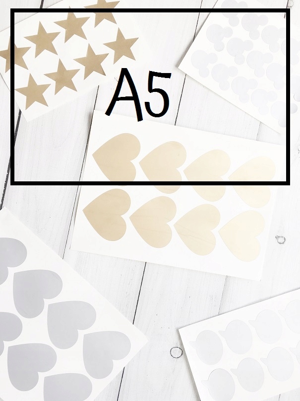 На інших аукціонах ви знайдете можливість придбати аркуш формату A4 або A5 ЗОЛОТО АБО СРІБЛО, наповнений стираючими наклейками з візерунком/візерунками та розмірами, які ви виберете.