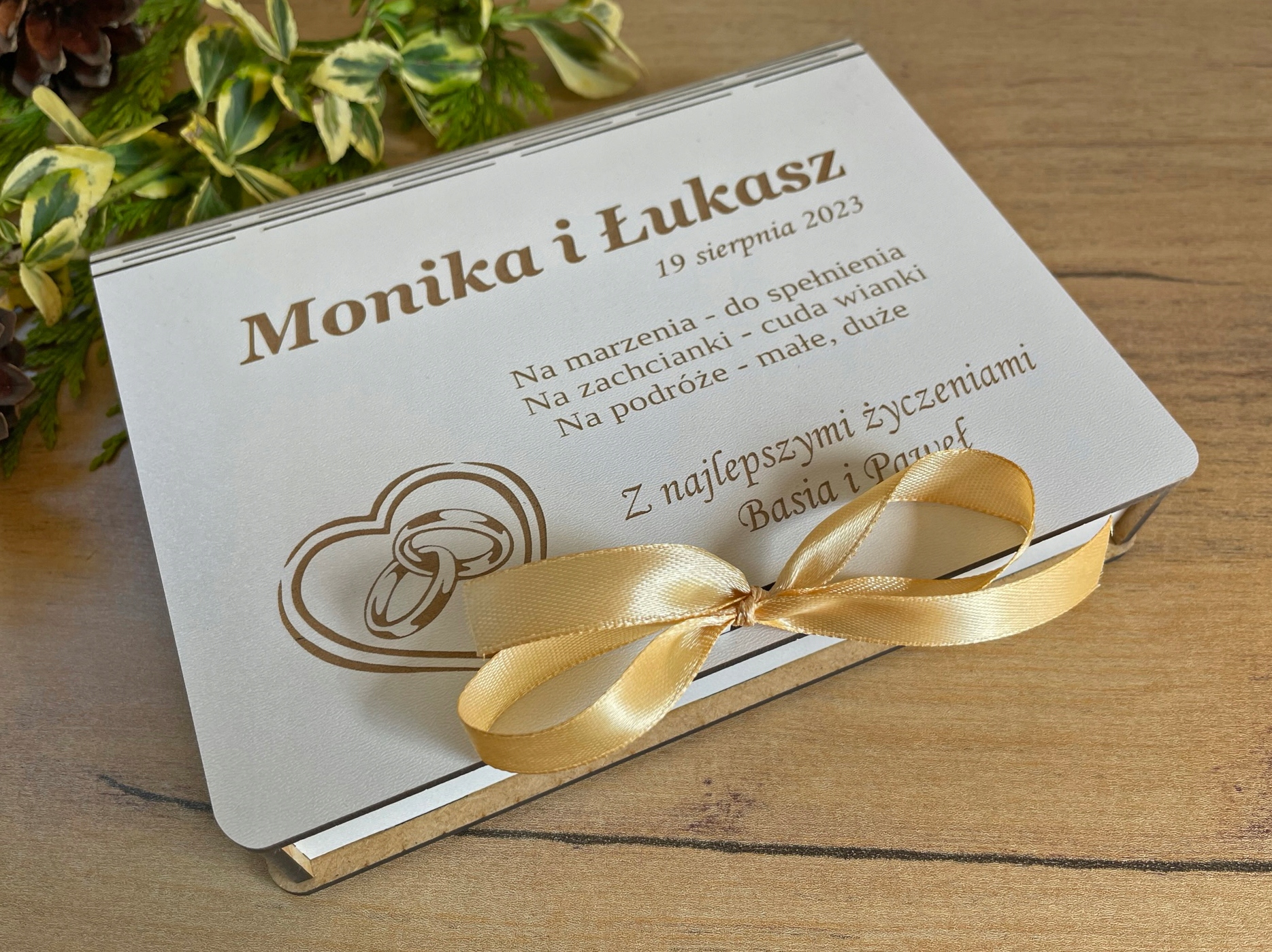 Красива скринька з гравіюванням для грошей, фотографій, весільний сувенір.