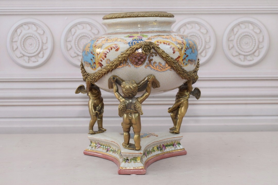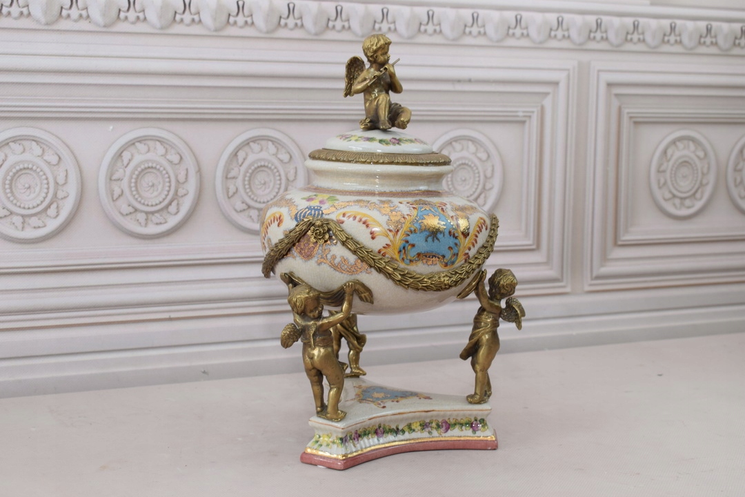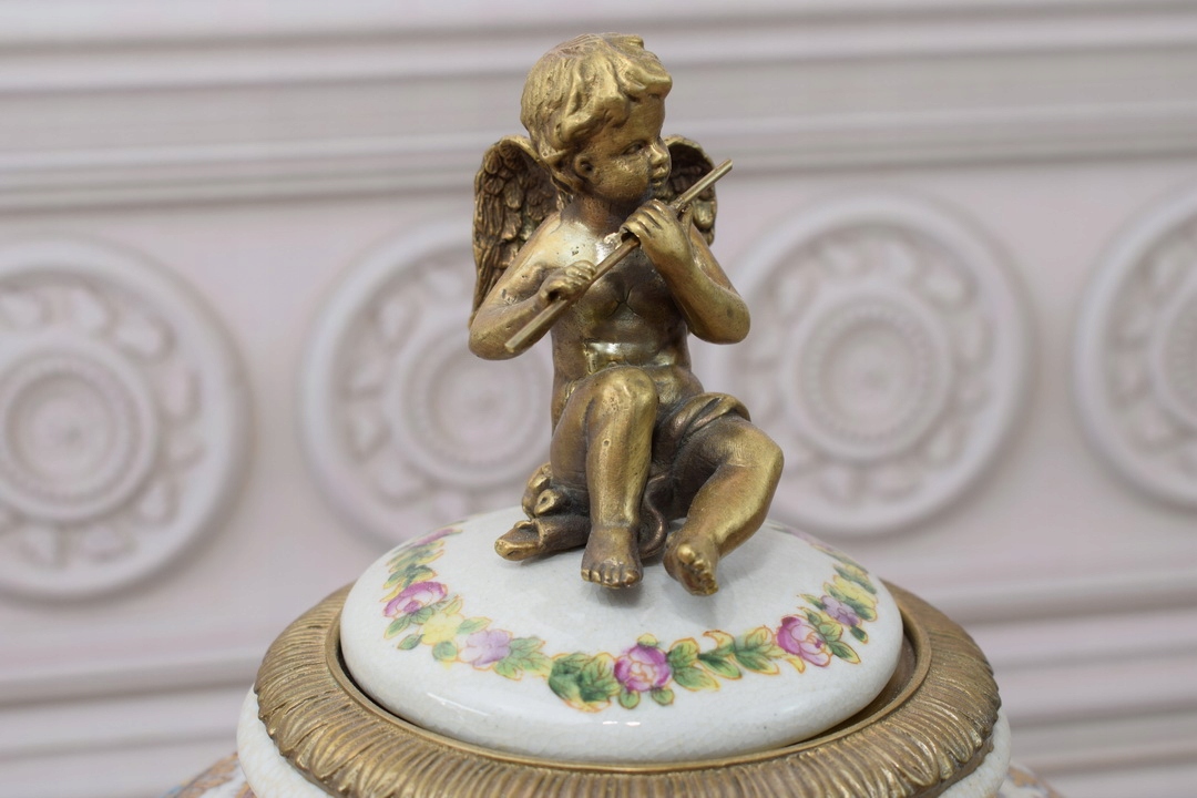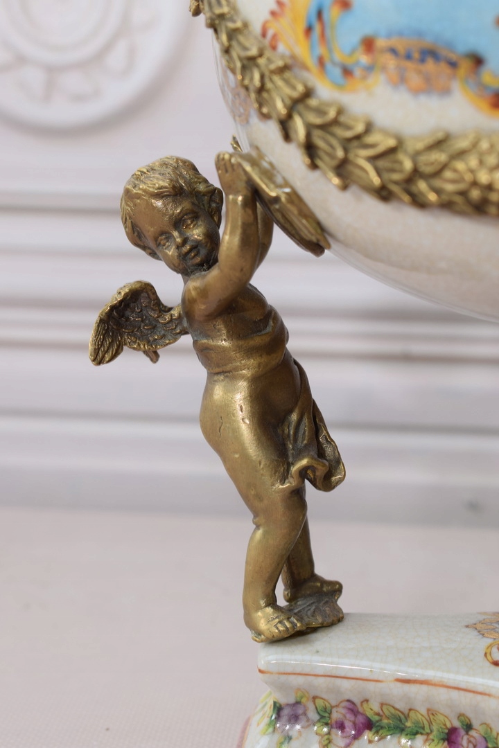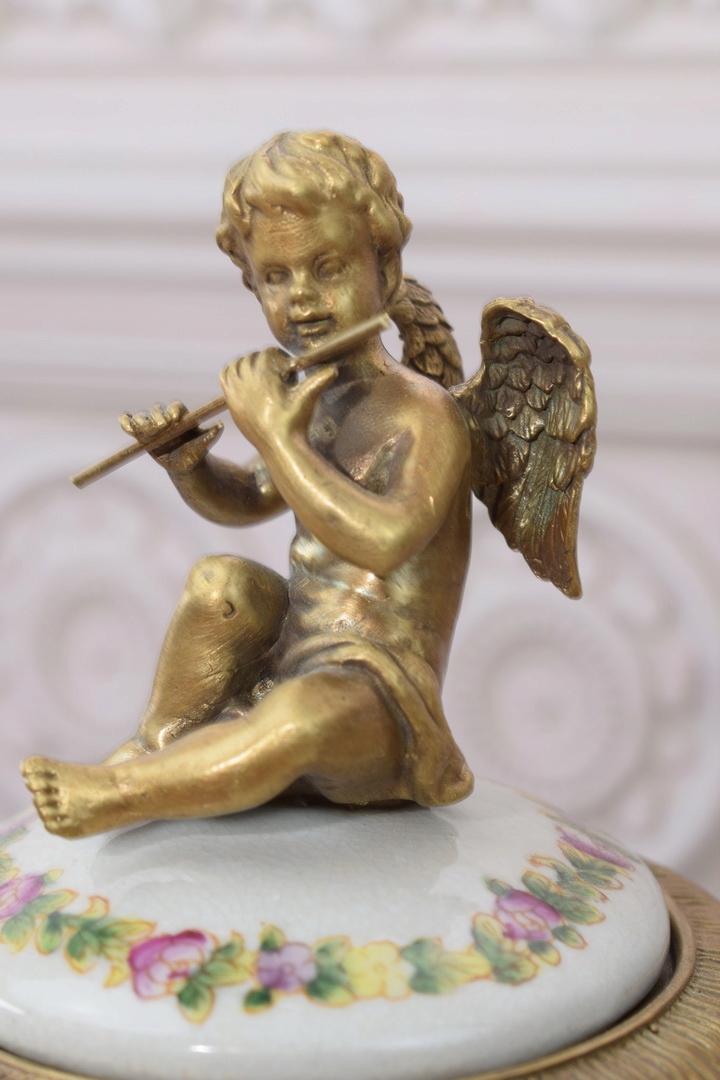 Скринька бомбоньєра з янголятами - Порцеляна + Позолочена бронза.