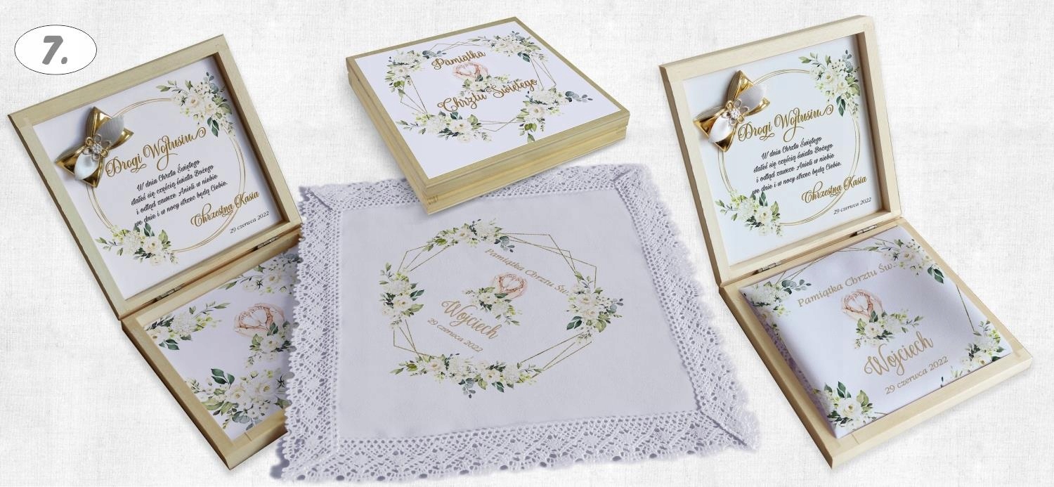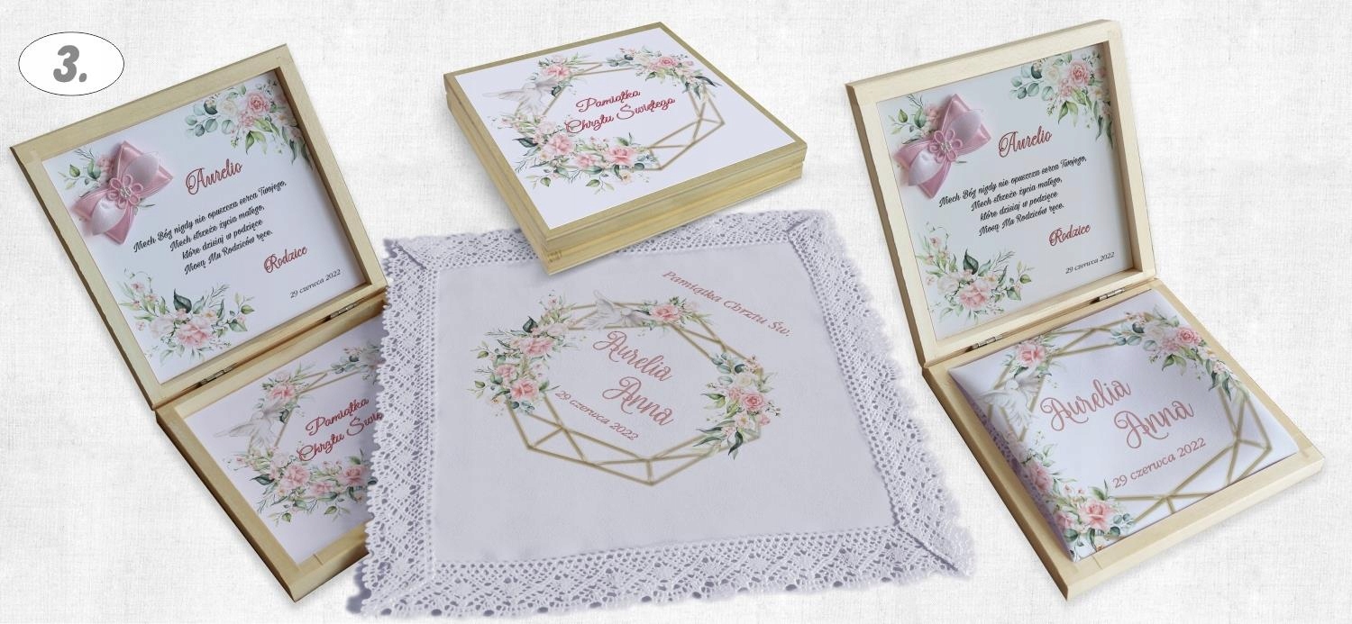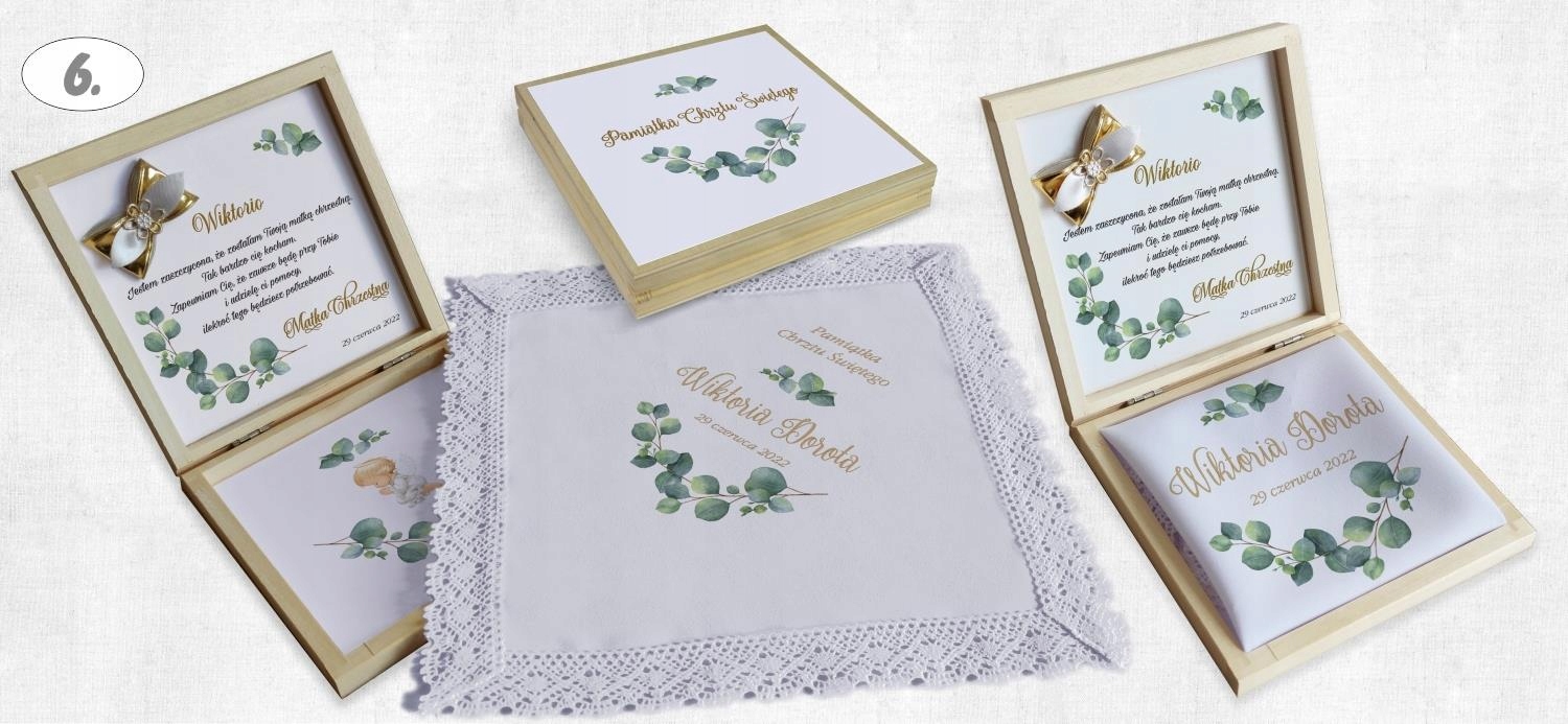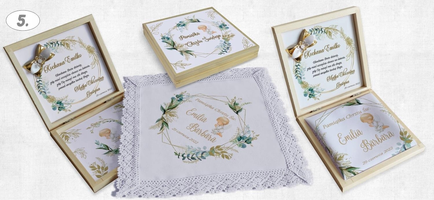 Всередині коробки міститься повідомлення про хрещення, ім’я дитини та відХто вони з побажань.