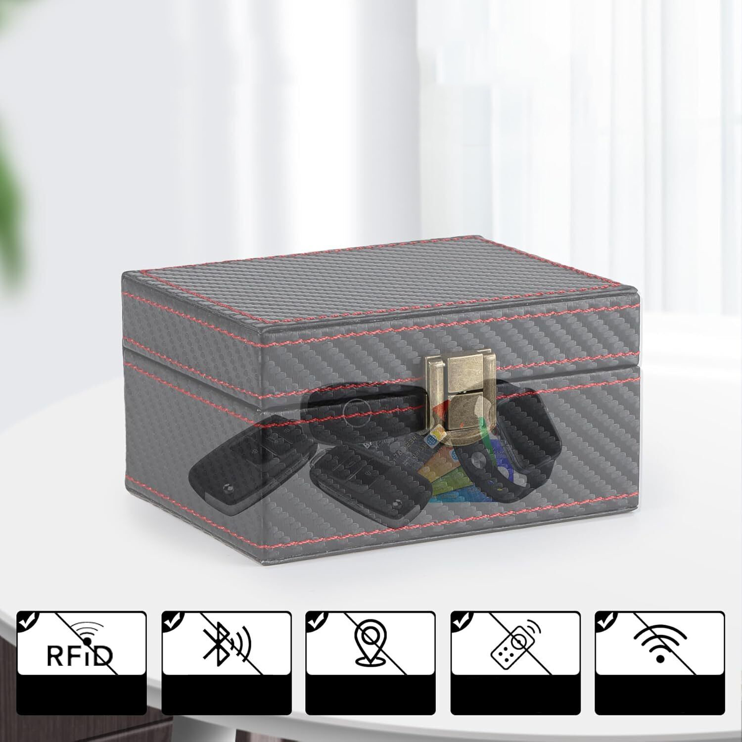 ➡️ Відповідає багатьом вимогам безпеки: Ця скринька без ключа (розміри Д: 11,6 х Ш: 9 х В 5,8 см) містить місце для 4 ключів від автомобіля, а також відповідає звичайним вимогам: у ній можна безпечно зберігати та легко зберігати карти доступу тощо знайдено при потребі. Це чудовий ящик для зберігання та блокування сигналу, захищає ваші ключі від зовнішнього сканування та захищає від крадіжки особистих даних.