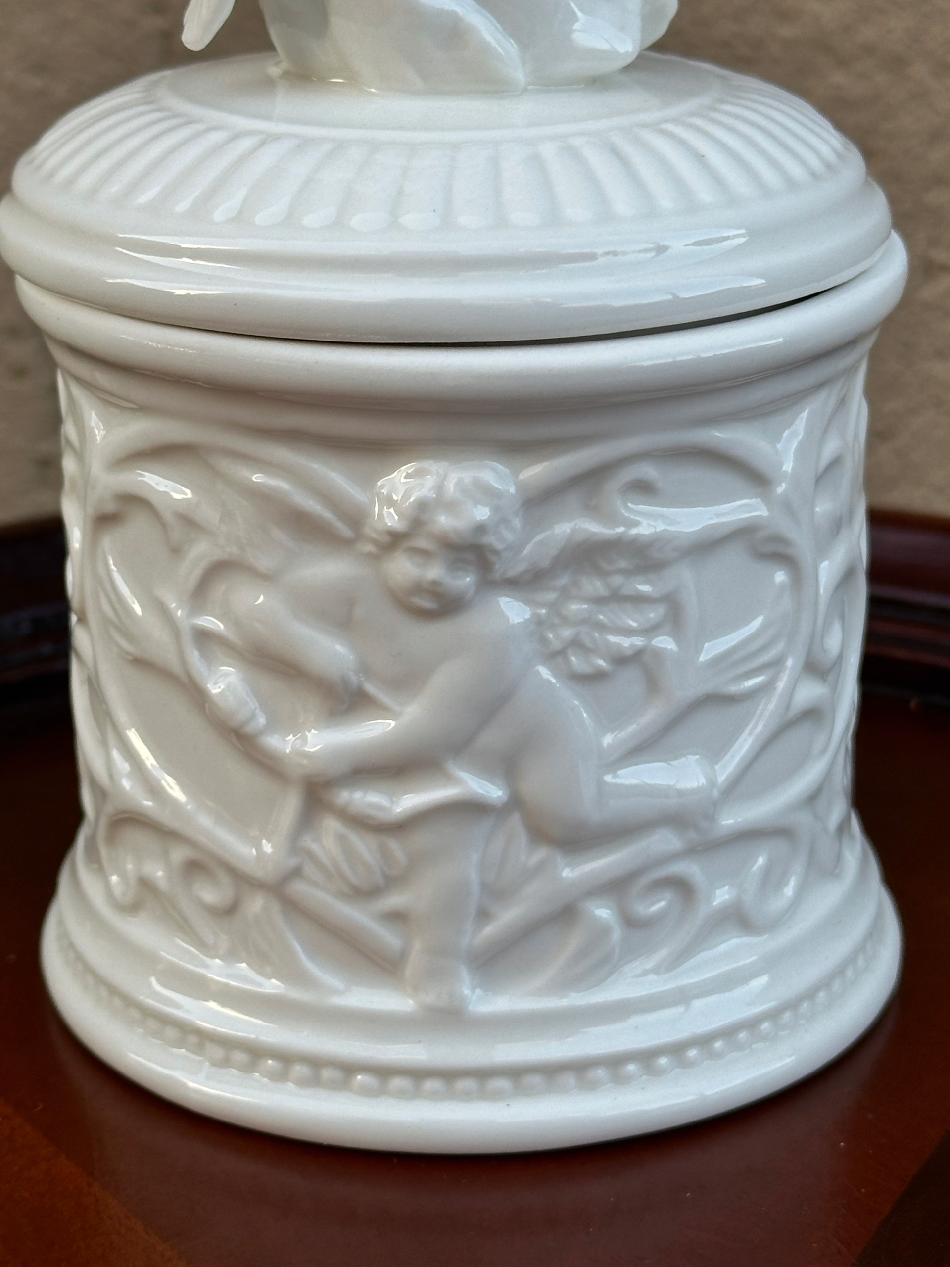 Скринька КУПІДОНА, КРУГЛА БІЛА ПОРЦЕЛЯНА, ПІДПИС