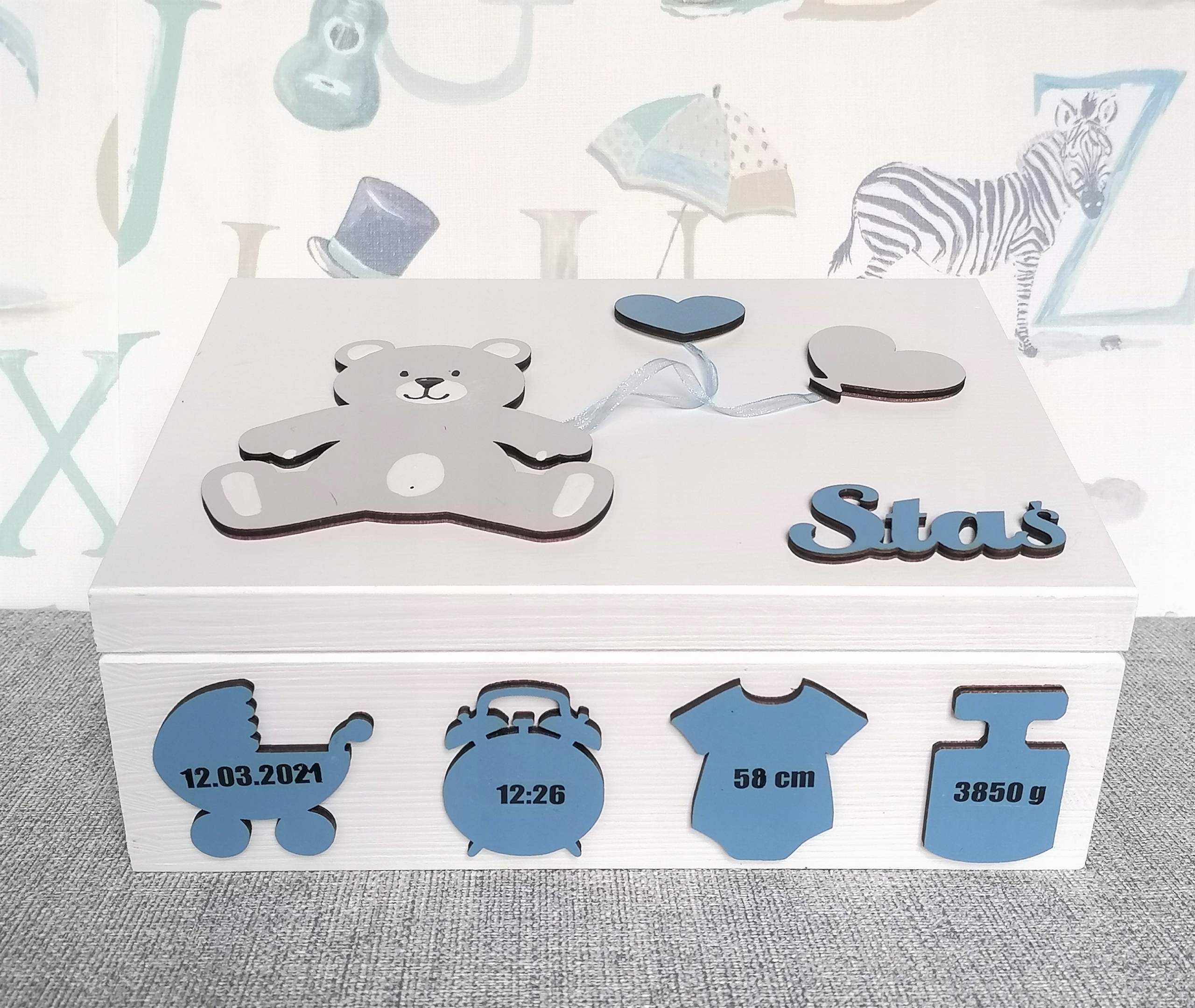 Дерев'яна скринька, розписана вручну, стане унікальним та оригінальним подарунком для новонародженої дитини.