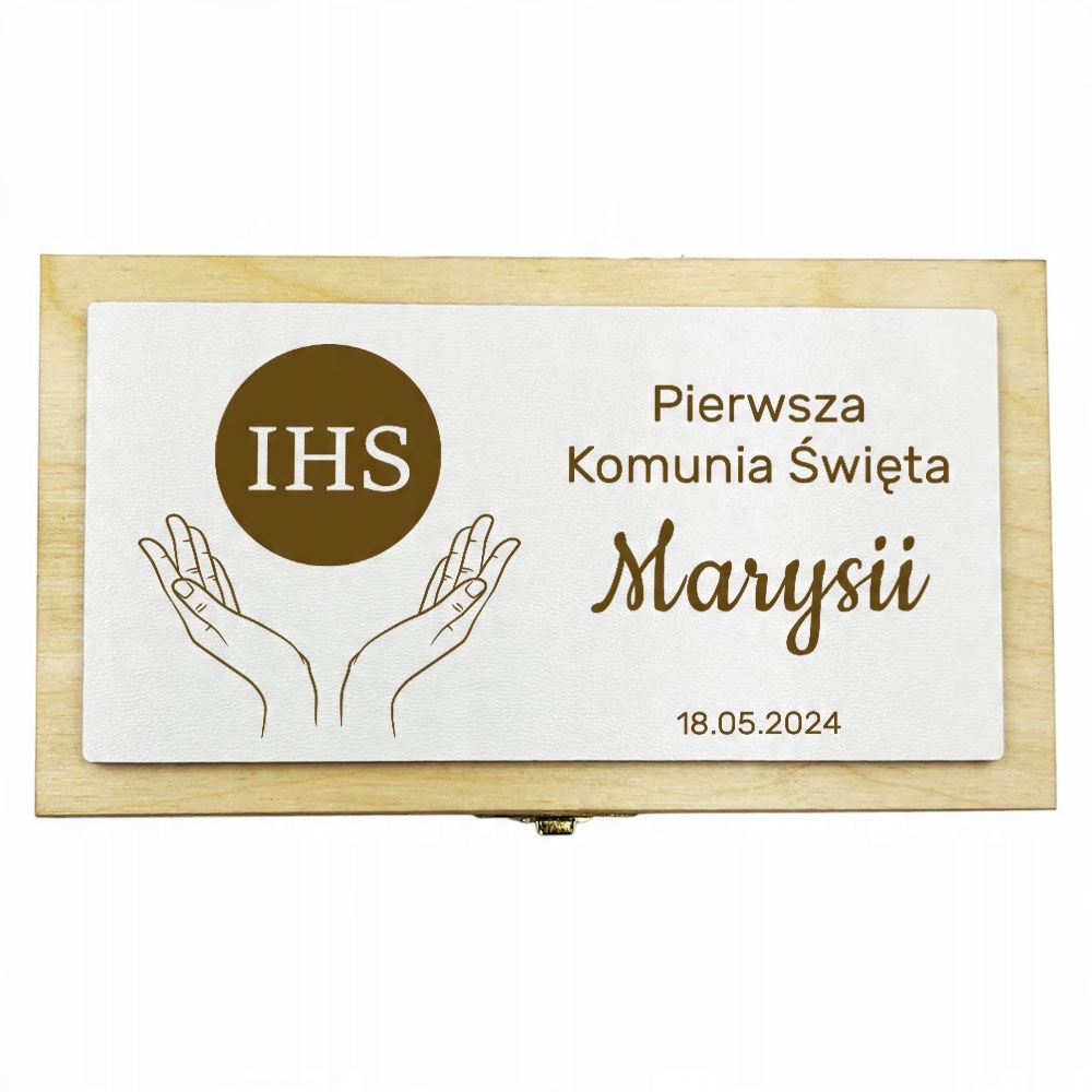 Дерев'яна скарбничка з гравіюванням - Подарунок до Причастя, Сувенір до Першого Святого Причастя
