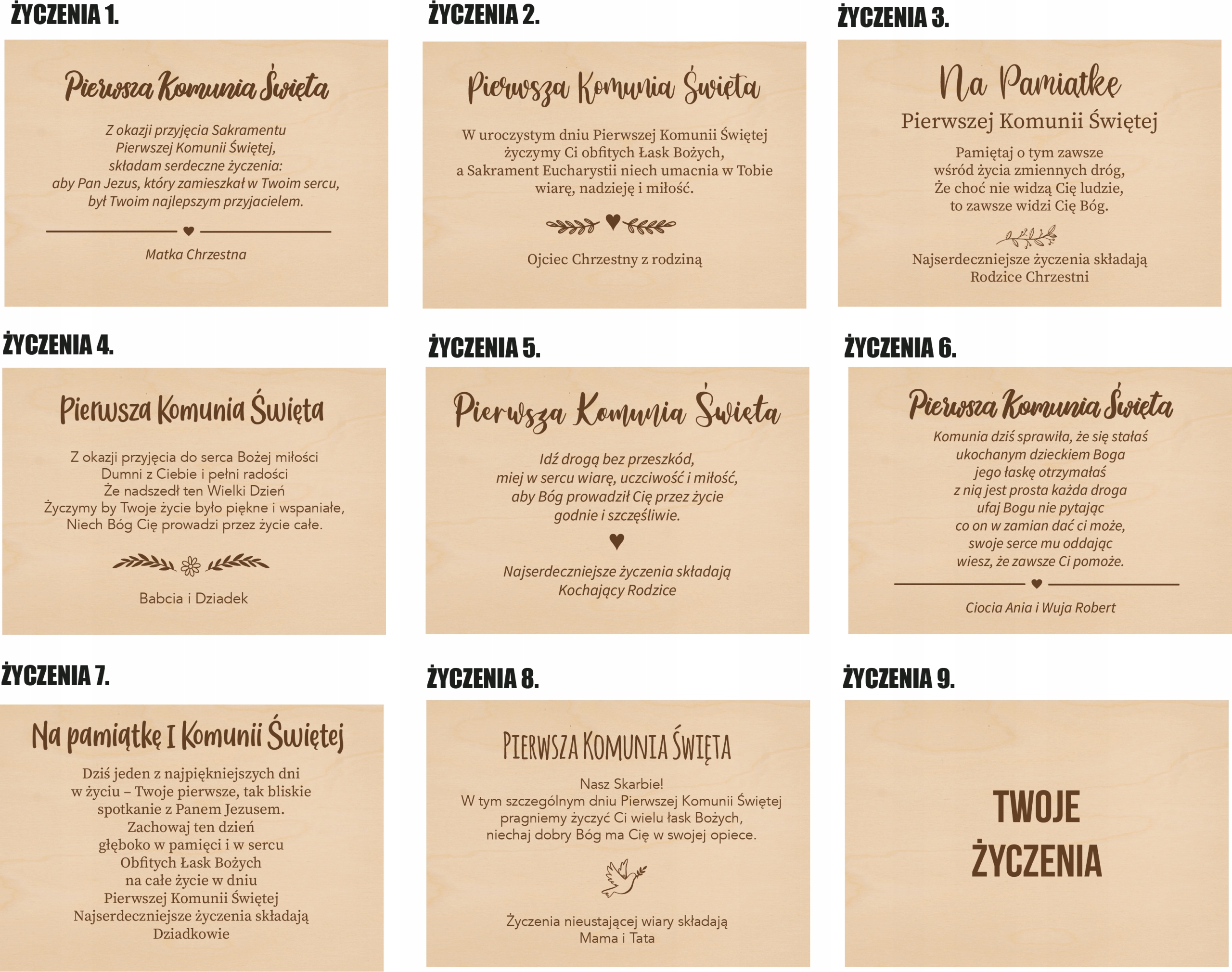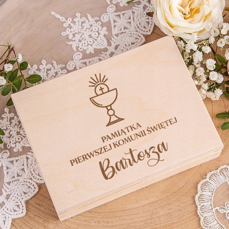 Наша дерев'яна скринька для грошей - це чудовий спосіб подарувати гроші як подарунок на Перше Причастя в елегантний та естетичний спосіб! На коробці вигравірувано прекрасну графіку Першого Причастя - аж 14 візерунків на вибір! Завдяки персоналізації у вигляді вигравіруваного імені, такий подарунок дуже особистий і унікальний. Одержувач неодмінно відчує себе особливимколи побачить своє власне ім'я на коробці! Це буде унікальний подарунок, який замінить паперову картку, і сувенір на довгі роки! ❤️