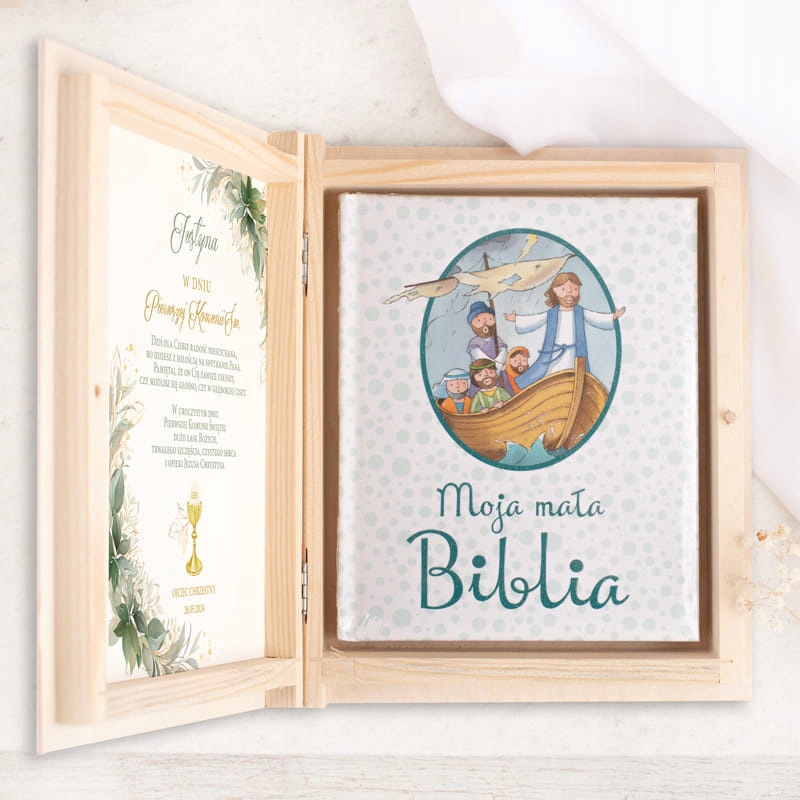Дерев'яна скриня з Біблією для Першого Святого Причастя