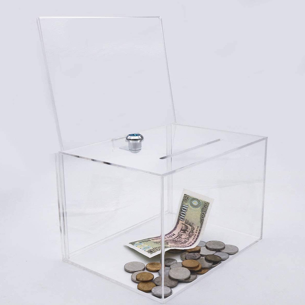 ✅Ця скринька виготовлена з високоякісного прозорого акрилу, який є стабільним і довговічним. Скринька для пропозицій оснащена міцним замком, який зберігає вміст у безпеці. Зрозуміле вікно пропозицій дозволяє легко побачити, який вміст є, і підходить для будь-якої події, яку ви проводите.