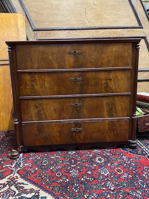 xix Вічний комод Бідермейер, Махагоні. Клапанний, функціональний, але витончений комод, закінчився з боків з "коси". Одна з ніг - для склеювання (фото). - ширина - 92 см