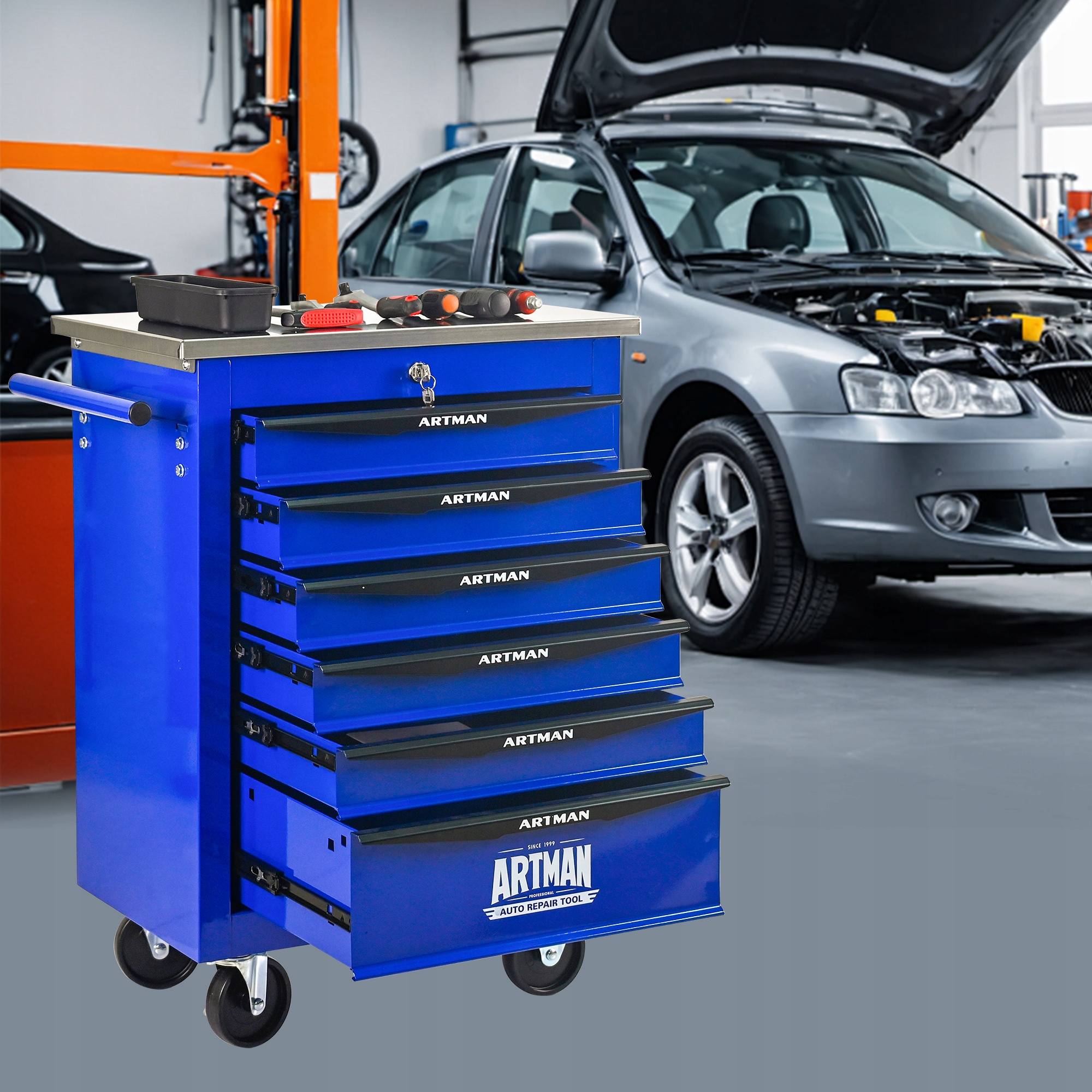 【Artman】 Як ідеальний органайзер для скрині з інструментами, він має 6 плавно висувних ящиків із центральним замком. Ця система надійно зберігає весь вміст, захищаючи ваші цінні інструменти від втрати чи несанкціонованого доступу з легкістю.