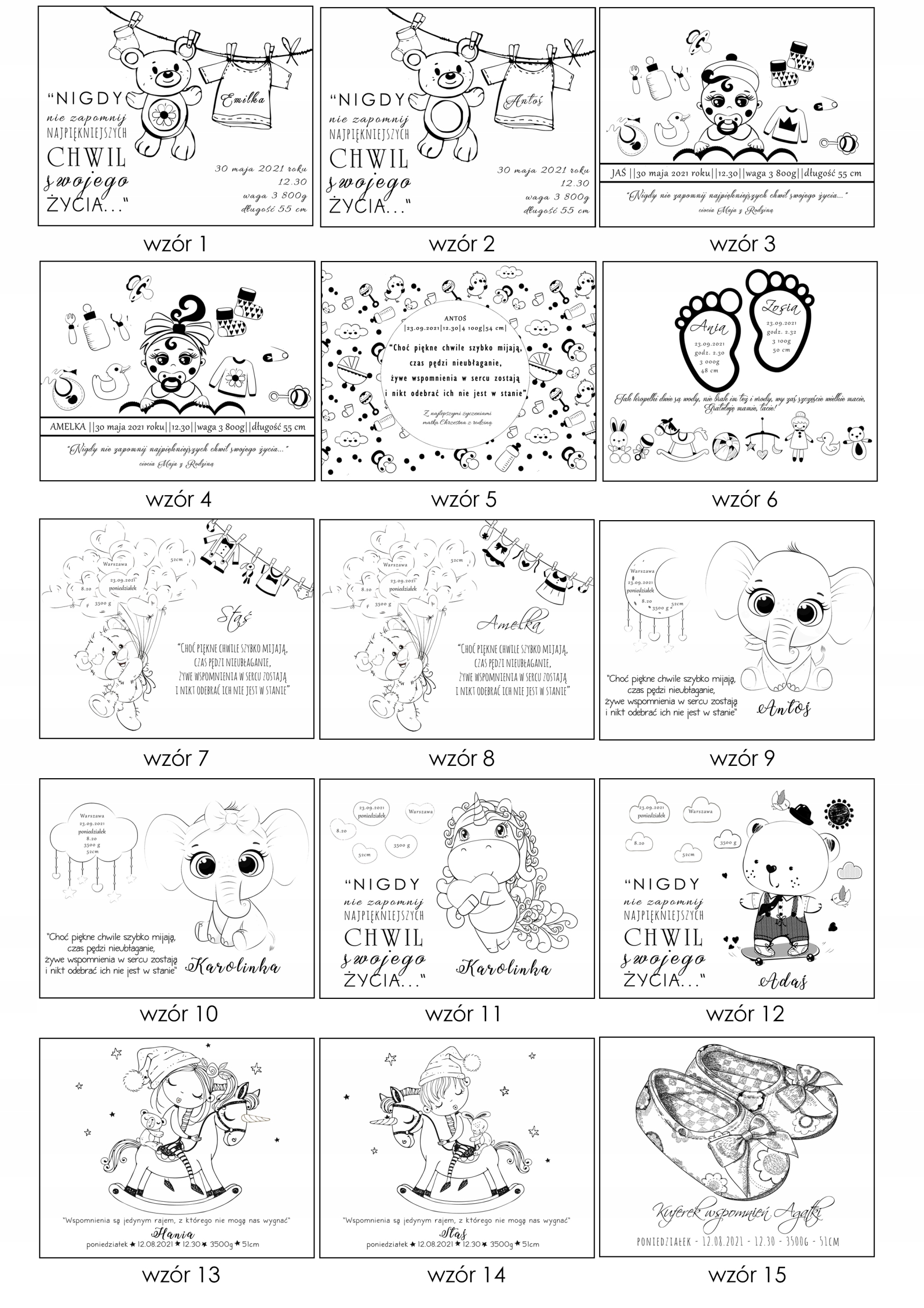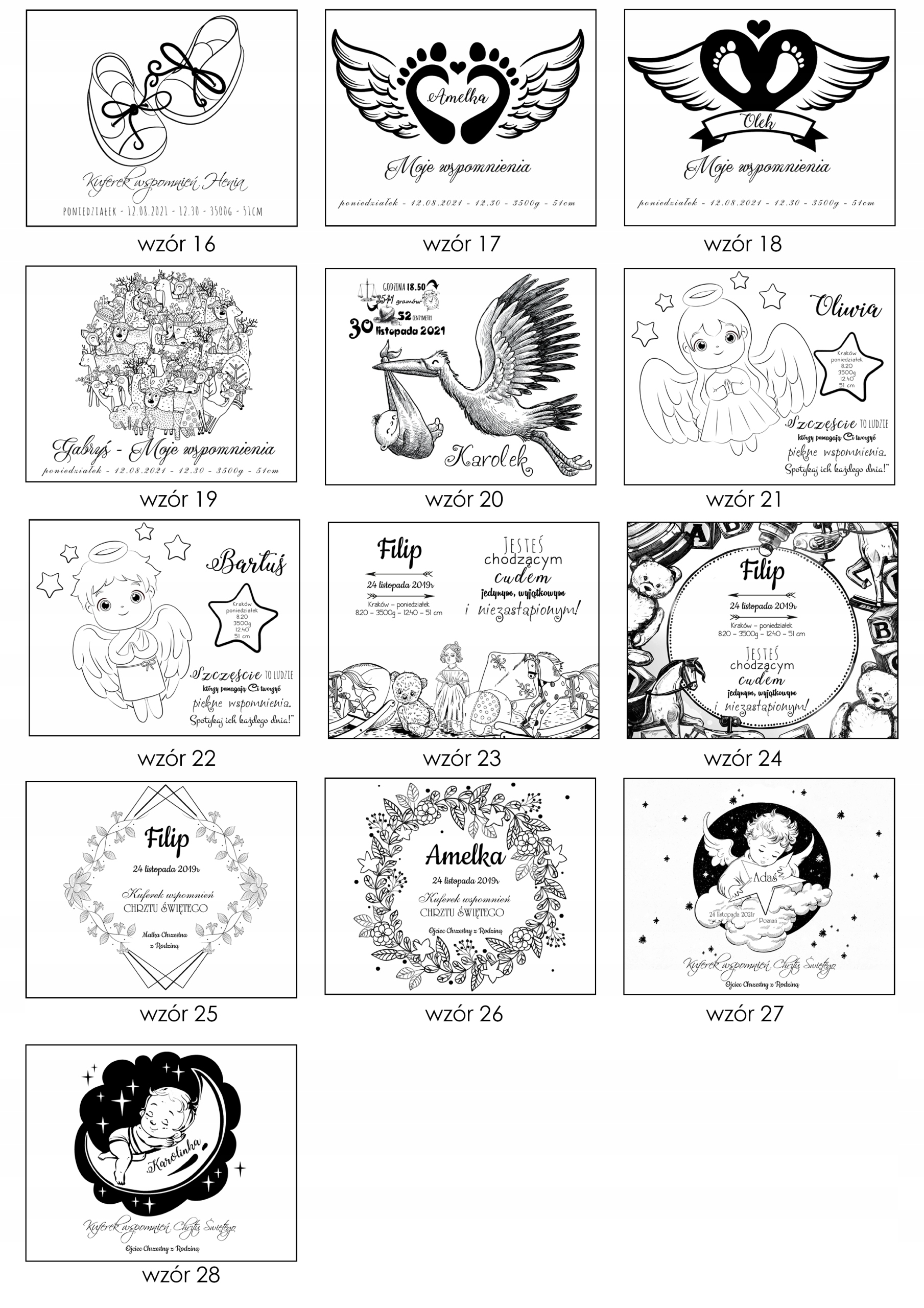 - дані для гравірування на 3D пластинах (дата народження, вага, день, час, довжина)