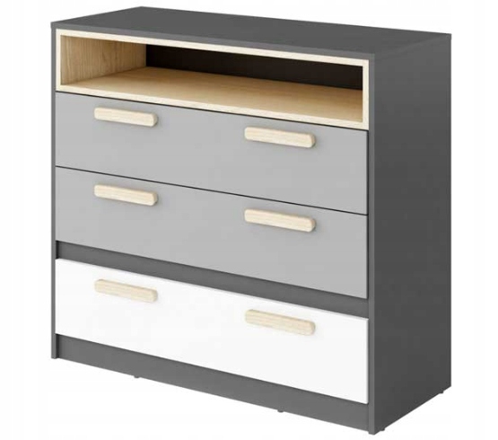 Poks - це класична пропозиція, що характеризується сучасним дизайном та високою функціональністю. Стиль позачасових меблів гарантує їх використання від дитячих до шкільних років. Прості просторові грудочки колекції POK додадуть надзвичайній енергії інтер'єру. Завдяки альтернативним кольорам, що поєднують модний графіт із сірим та теплим відтінком бука Ібсена з білим, і дівчата, і хлопчики люблять нову кімнату. меблі виготовлені з довговічної ламінованої плити, завершеної ABS.