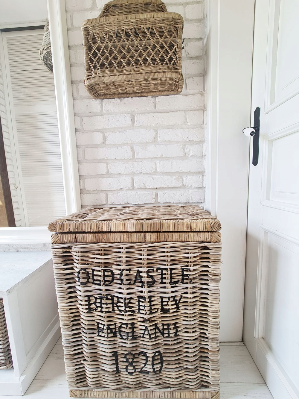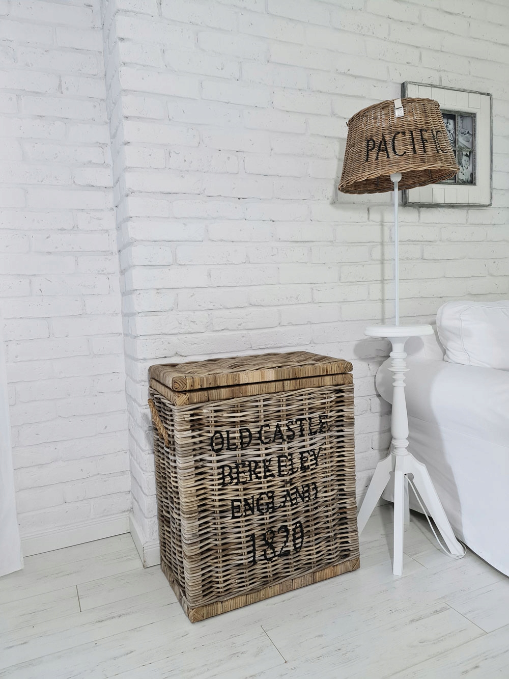 сільська коробка передач, кошик, контейнер Hampton, виготовлений з ротанга з кришкою. Він має стабільний кадр і особливо корисний як кошик для білизни (брудний), звичайно, він також може бути використаний для інших цілей. Він також ідеально знайдеться як багажник для іграшок у дитячій кімнаті або як ліжковий стіл у спальні. Зроблено вручну, пам’ятайте, що це природний продукт, і колір може бути трохи . Кришка прикріплена двома петлями.