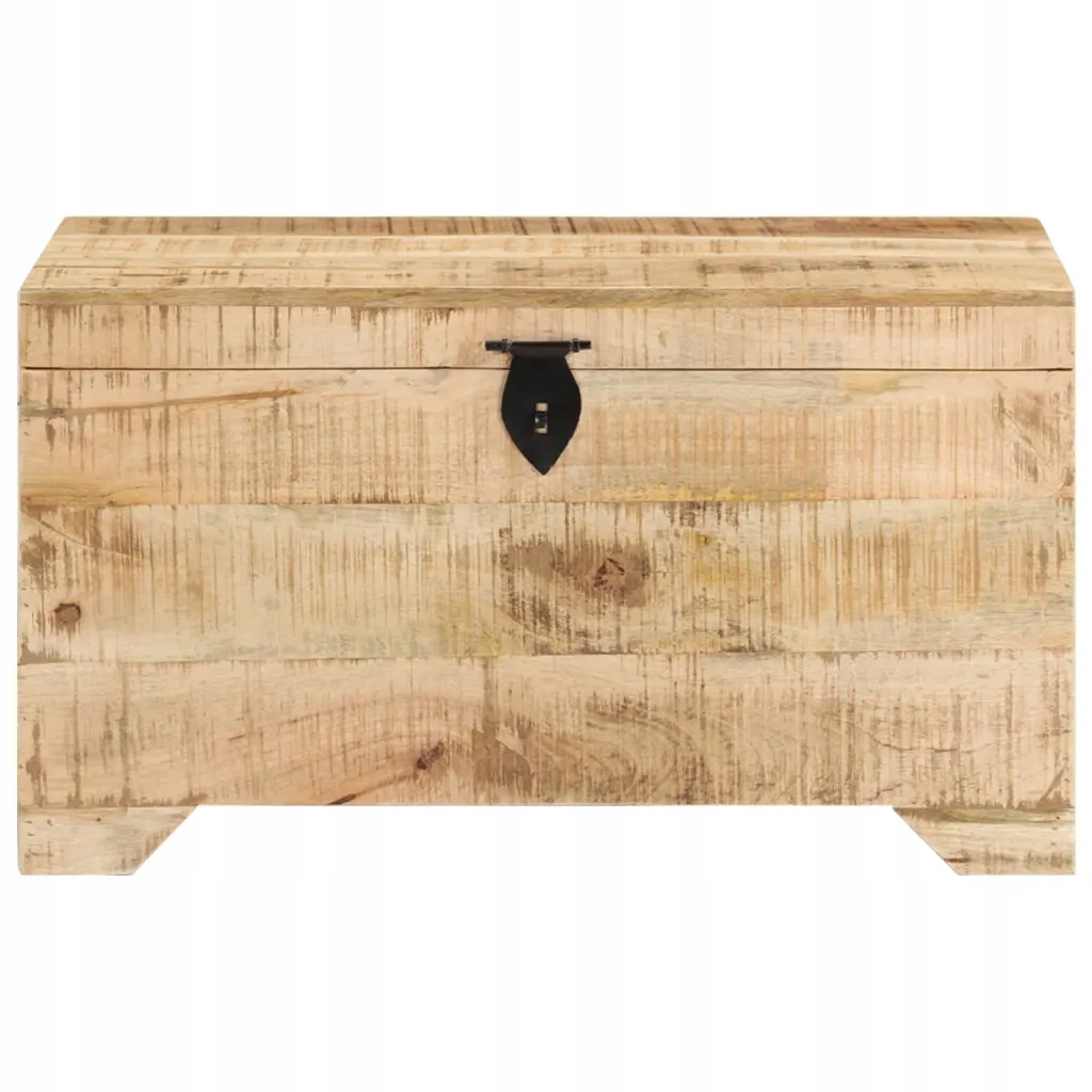 Скриня виготовлена з необробленого мангового дерева, яке є міцним, стійким і елегантним. Майстерність виготовлення надає ефектного ретро-стилю. Тут також достатньо місця для зберігання одягу, журналів, книг, іграшок, інструментів та інших аксесуарів. Комод має засувку спереду та дві ручки збоку. Завдяки стійкій верхній частині цю дерев’яну коробку також можна використовувати як журнальний столик, диванний столик, приставний столик, журнальний столик тощо. Красива деревина робить кожен предмет меблів унікальним і дещо несхожим на інші.