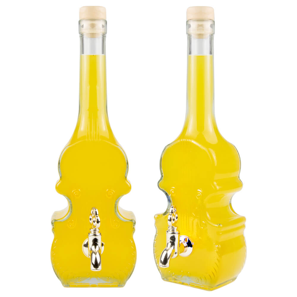Унікальний скрипковий графин з краном ємністю 500 мл виготовлений з високоякісного товстого прозорого скла. Унікальна форма скрипки в поєднанні з тисненням ідеально відображає музичний інструмент. Пляшка у формі скрипки - ідеальний подарунок для всіх, а не тільки для любителів музики та музичних інструментів. Чудово виглядає на будь-якій кухні чи барі.