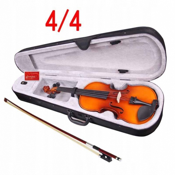 Фізичні дані Розмір - 4/4 (59 см) Колір - Натуральний Оздоблення корпусу - натуральний блиск Верхня тарілка - Jodła Бока і спинка - клен Матеріал горловини - Клен Висота [мм] - 533 Ширина [мм] - 178 Глибина [мм] - 51 Вага нетто [кг] - 1,2 Тип упаковки - картон У набір входить - Лук, Каніфоль, Футляр